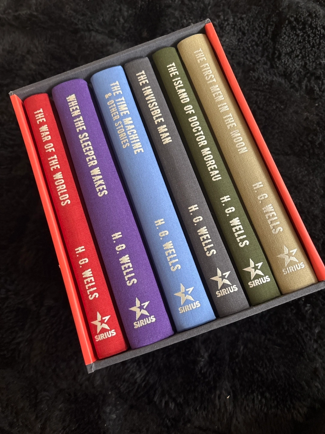 Sirius edition. Five classic novels in a collectible box set. Includes: *The War of the Worlds*, *When the Sleeper Wakes*, *The Time Machine & Other Stories*, *The Invisible Man*, *The Island of Doctor Moreau*, and *The First Men in the Moon*. Great condition.