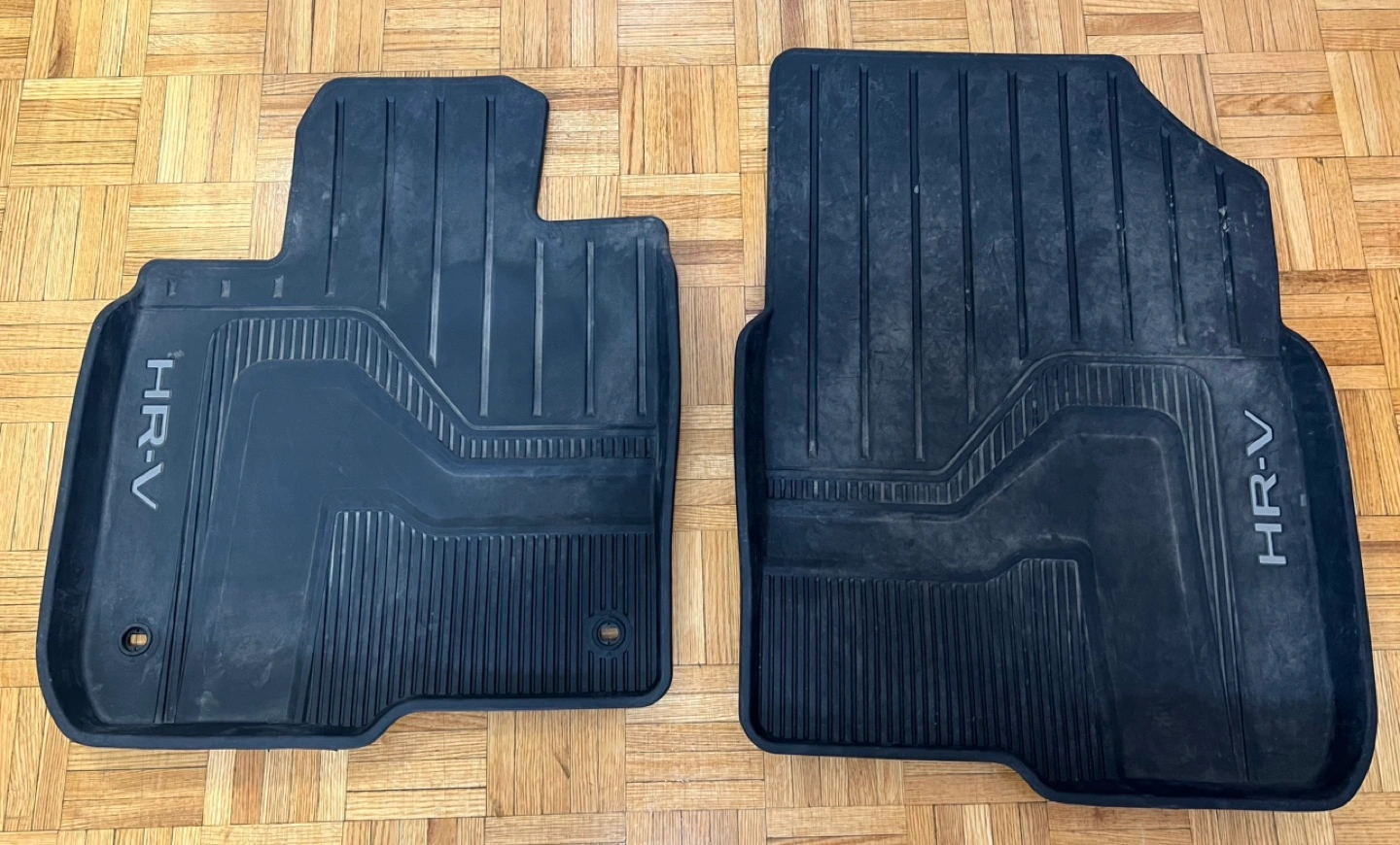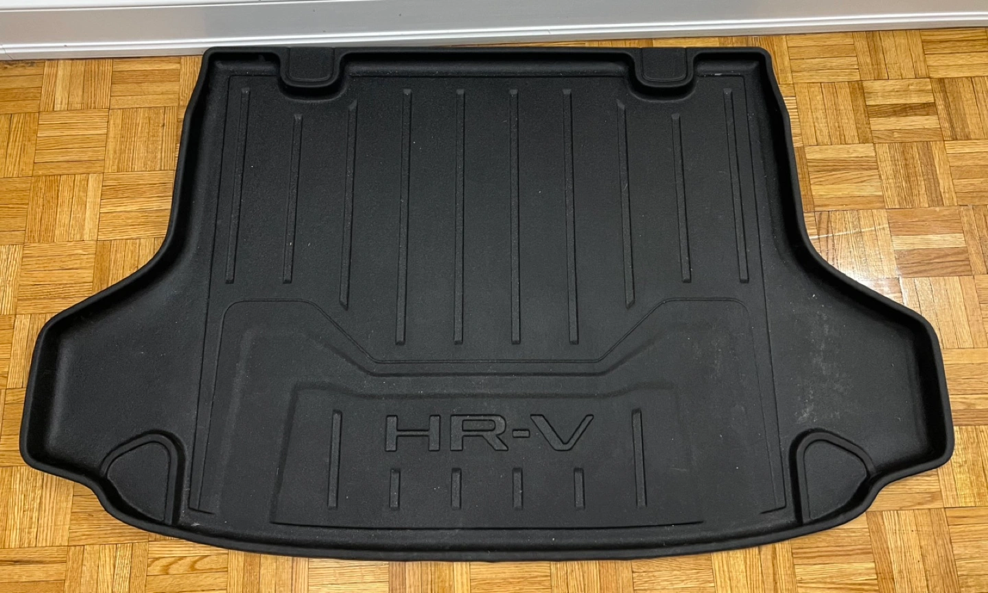 53Set of three all-weather floor mats and a cargo tray. Designed for Honda HR-V. Shows some minor wear.