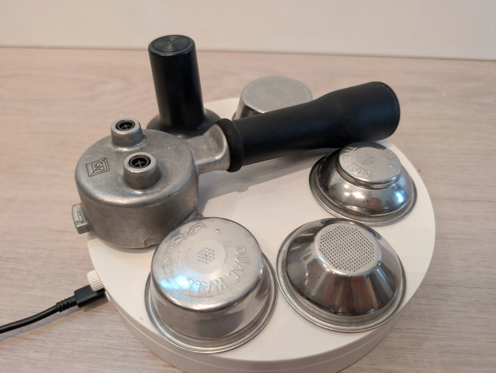 Breville espresso machine. Includes portafilter and several filter baskets. Stainless steel finish. Like new condition. Model BES450BSS7A.