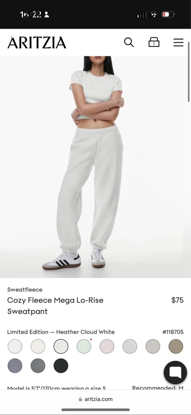 Limited edition Aritzia sweatpants. Cozy fleece material. Mega Lo-Rise fit. Heather Cloud White colour