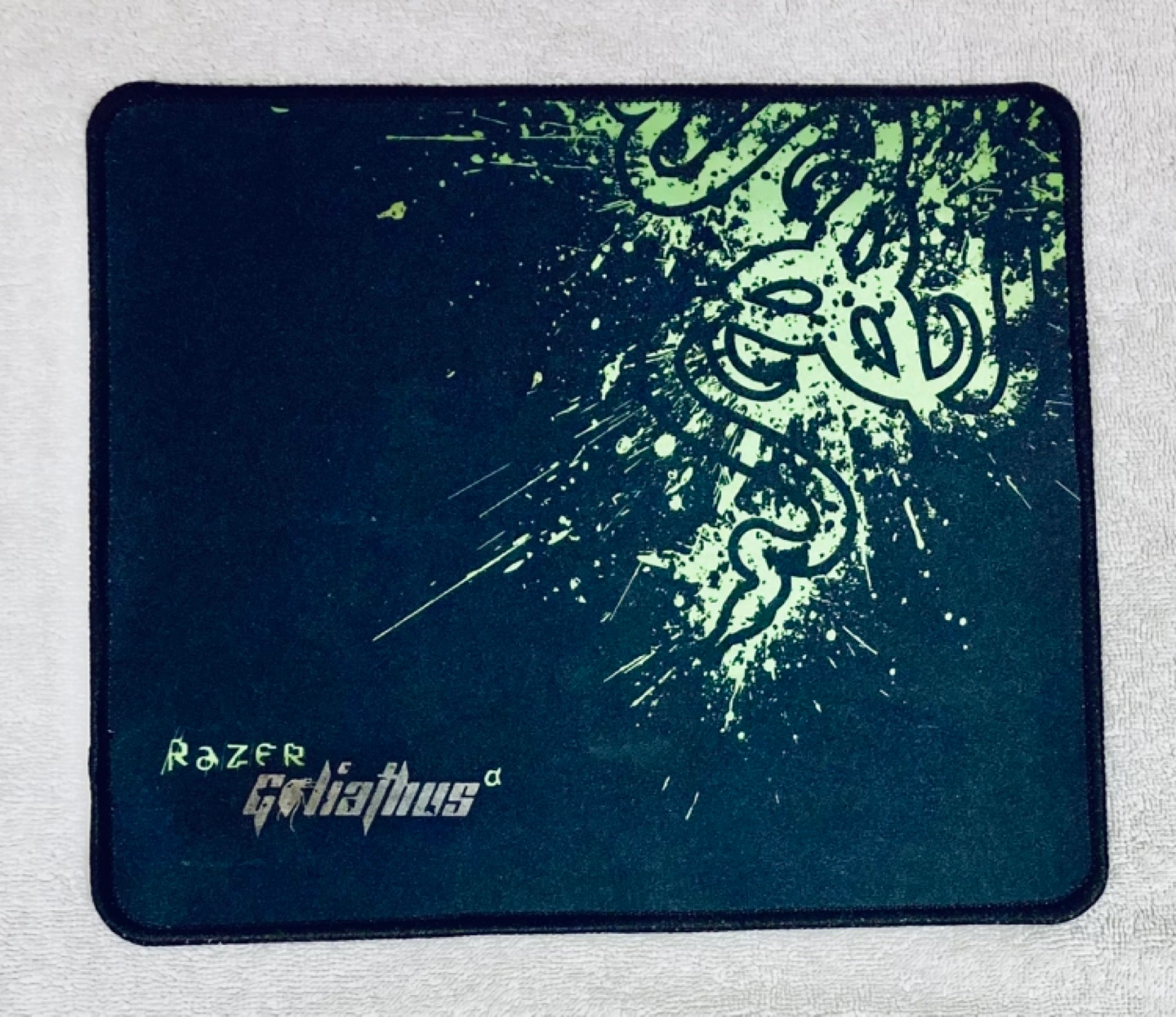 Razer Goliathus mousepad. Large size. Black with green accents. Excellent for gaming. Good condition. 29 x 2 centimetres.
