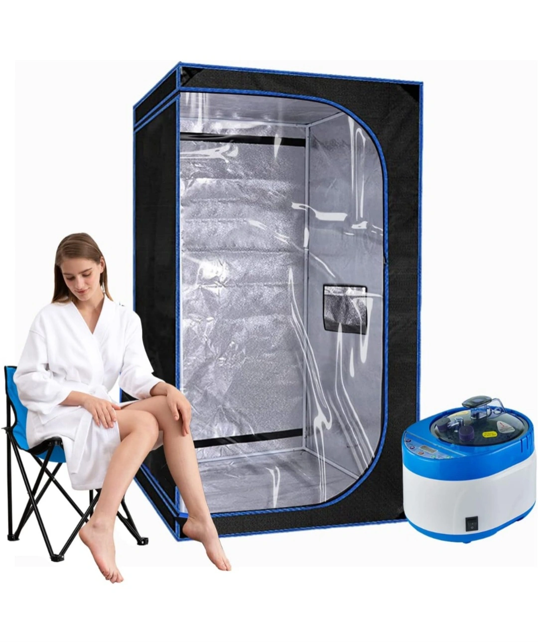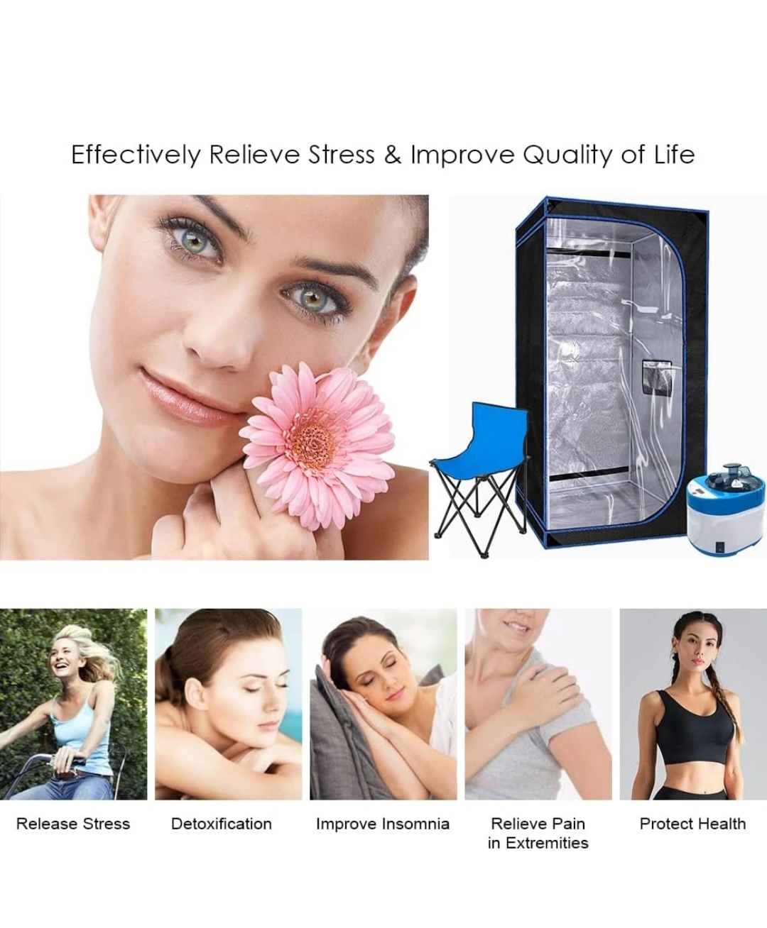 Relax and rejuvenate with this portable sauna. Includes a foldable chair and steamer. Easy setup, lightweight and compact for convenient storage. Perfect for home use. Durable and breathable materials. Improves sleep and reduces stress.