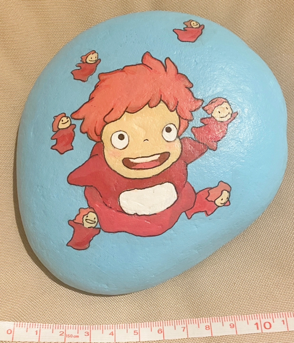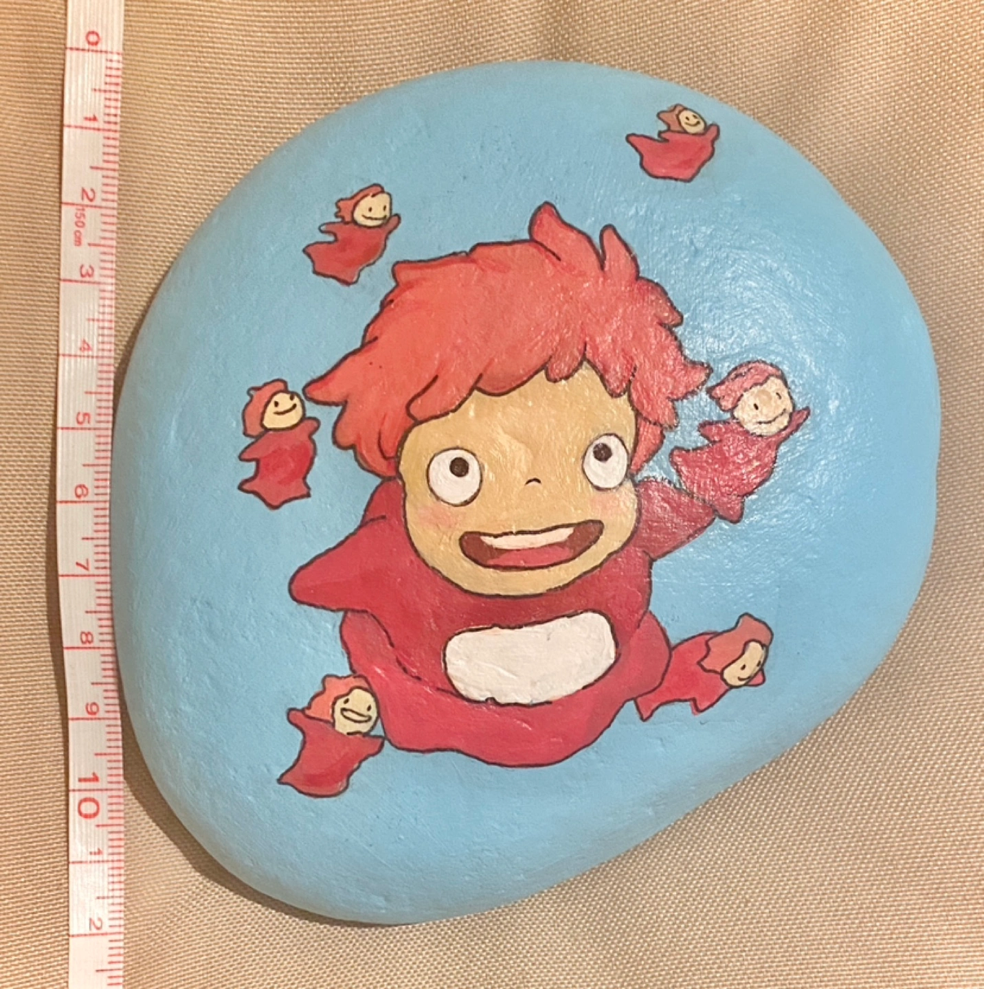 Three unique hand-painted rocks featuring characters from Studio Ghibli's Spirited Away.