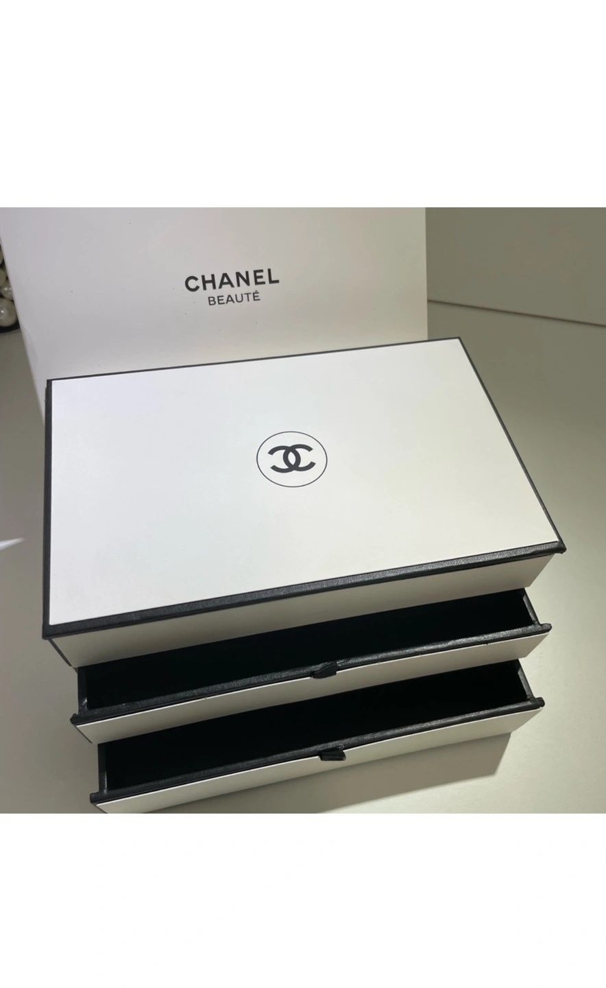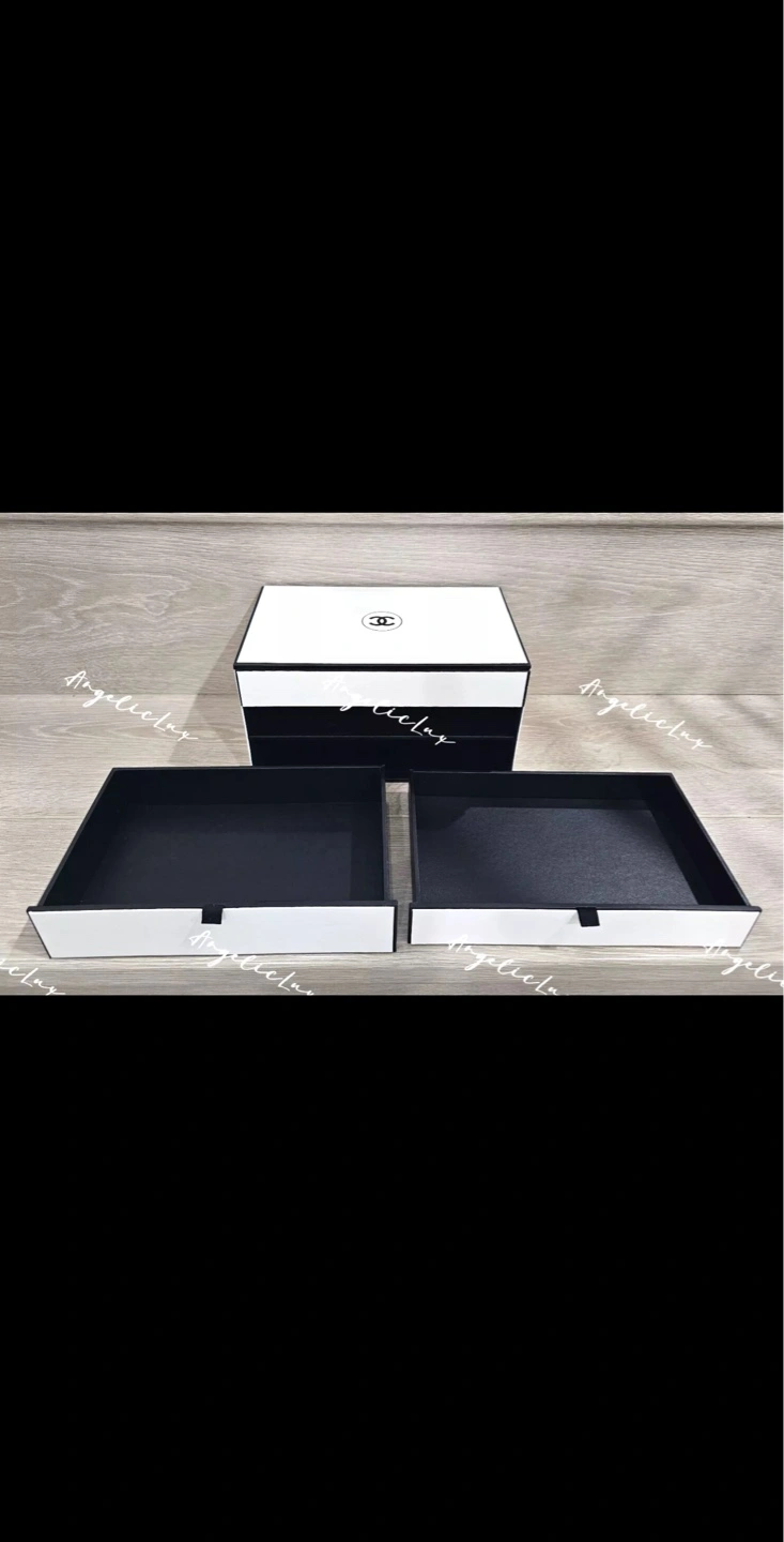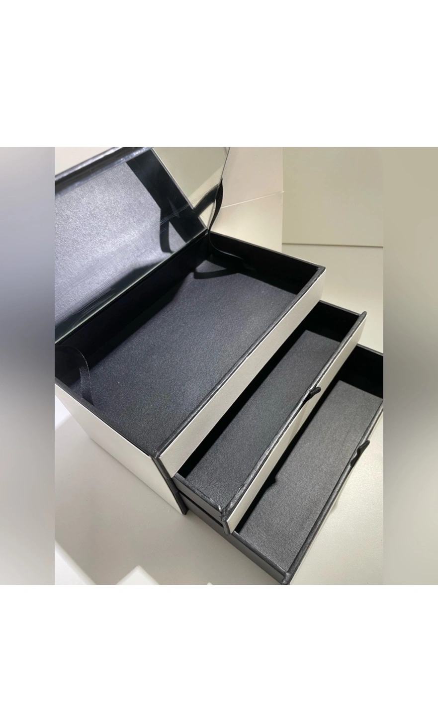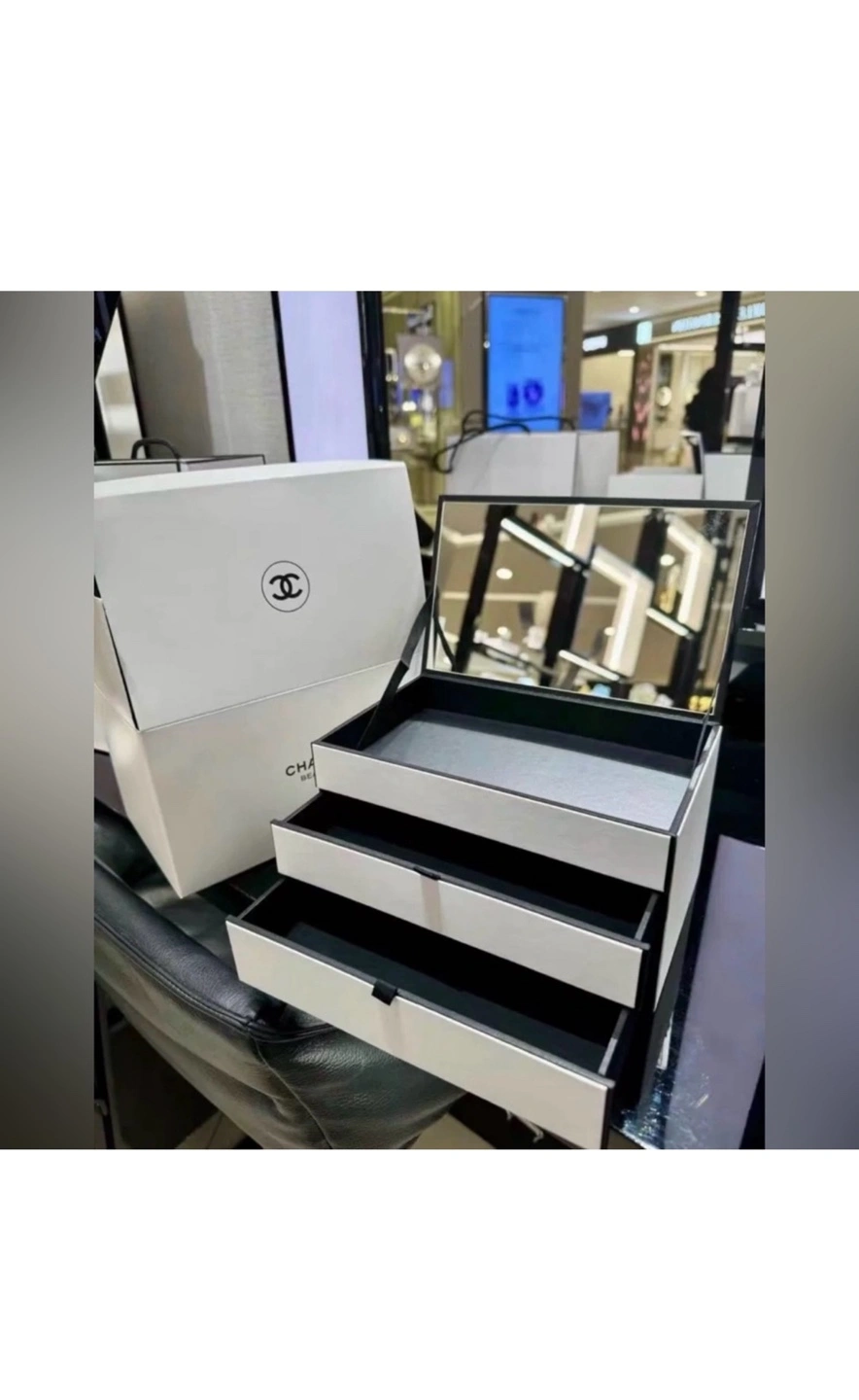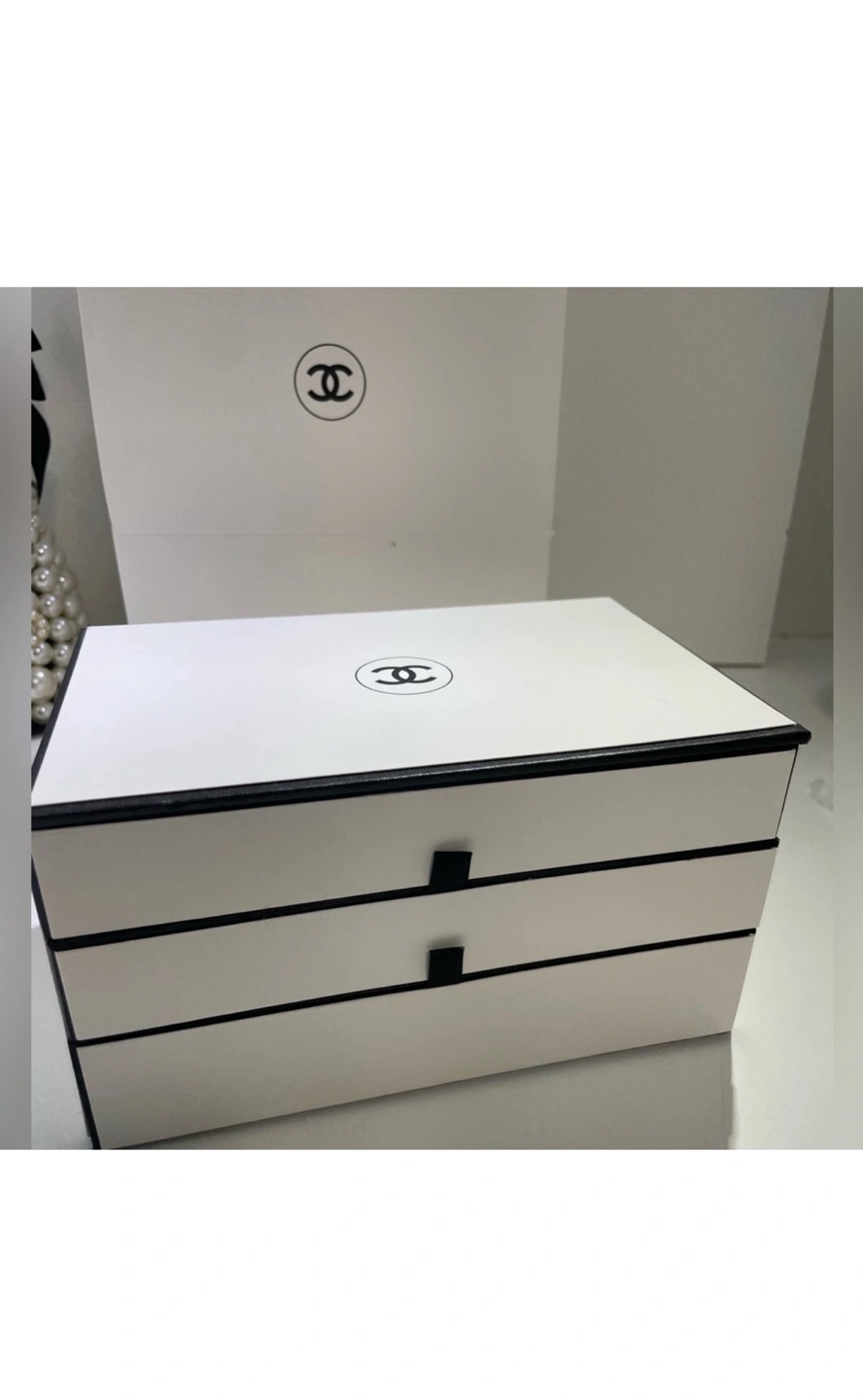 Chanel Elegant three-drawer makeup jewellery box. ✨Features a mirrored lid ✨Black felt lining throughout each drawer to protect your makeup or Jewelry. ✨ Fits my Makeup and Hair Pins - Cash or e-transfer accepted - Pickup or can mail through Canada post