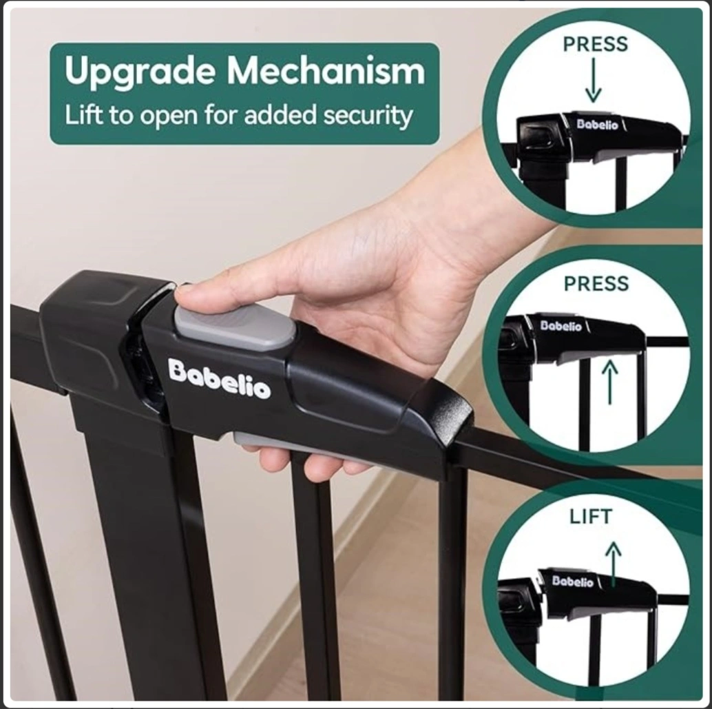 Pressure mounted design. Easy to install and remove. Lift to open mechanism for added security. Suitable for doorways and stairs. Keeps children and pets safe.