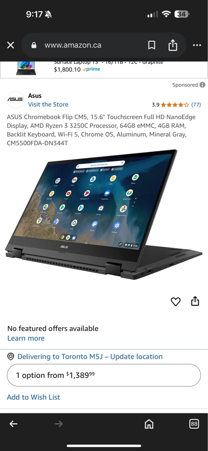 37Used ASUS Chromebook CM5500 Flip. Black. Features a convertible design. Great for students was only used for a year. Great touch screen laptop. Retail’s for $1200