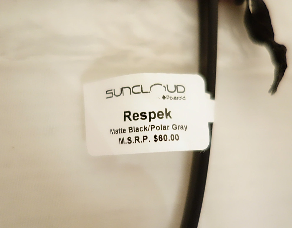 New Suncloud Respek sunglasses. Matte black frames, polarized gray lenses. Includes microfiber carrying pouch. Model SC-RESPEK. MSRP $60.00.