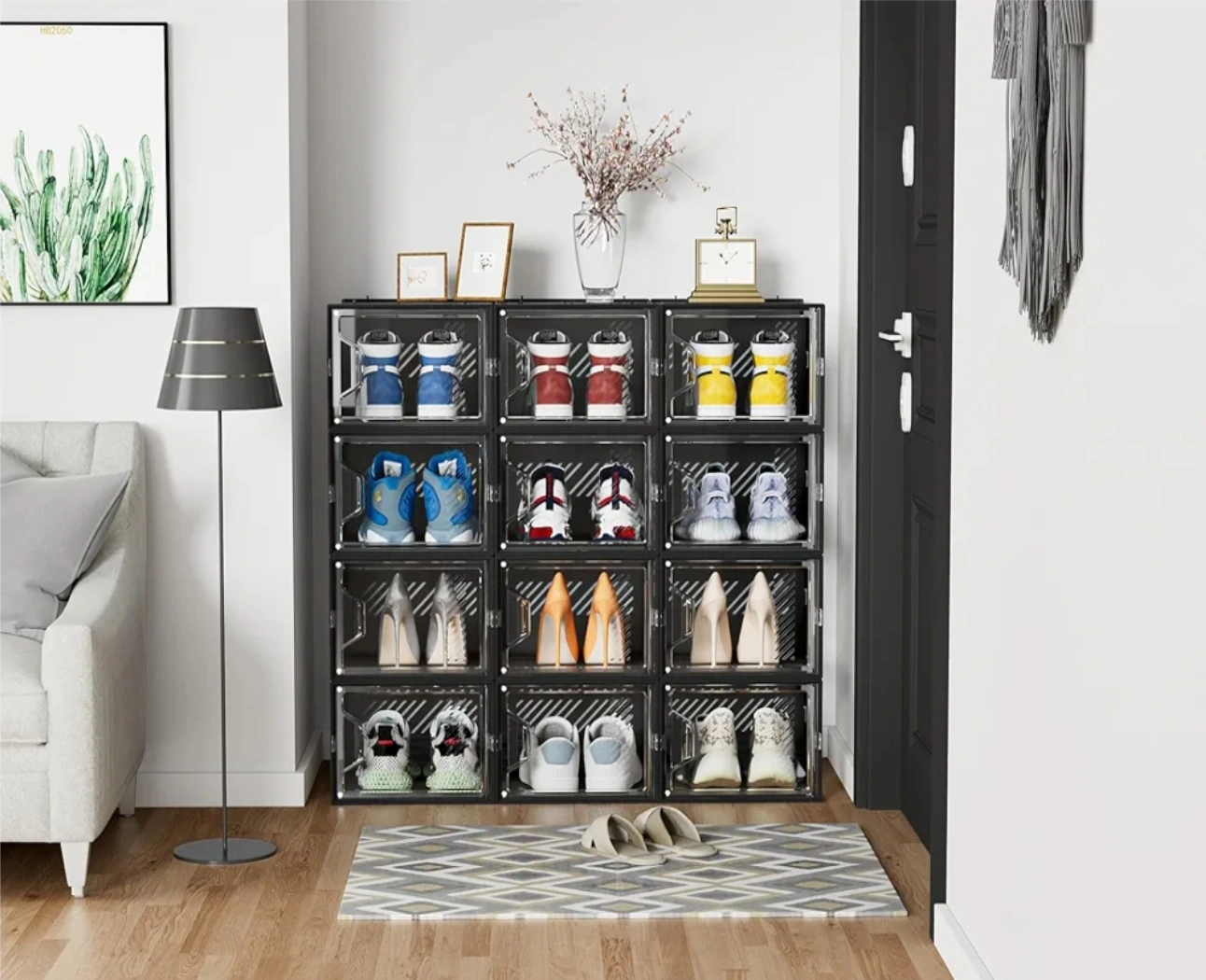 12 Stackable Clear Shoe Storage Boxes with Magnetic Doors