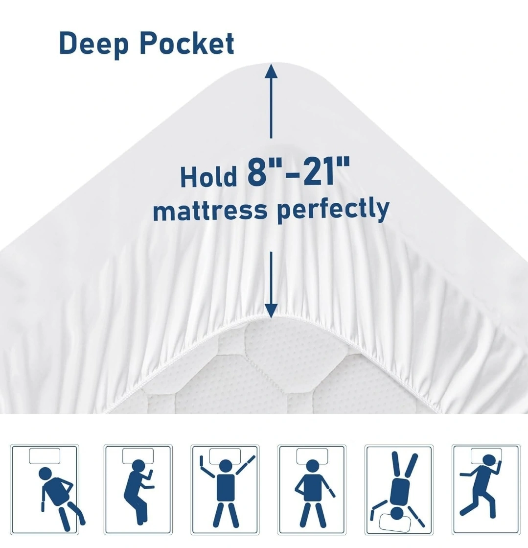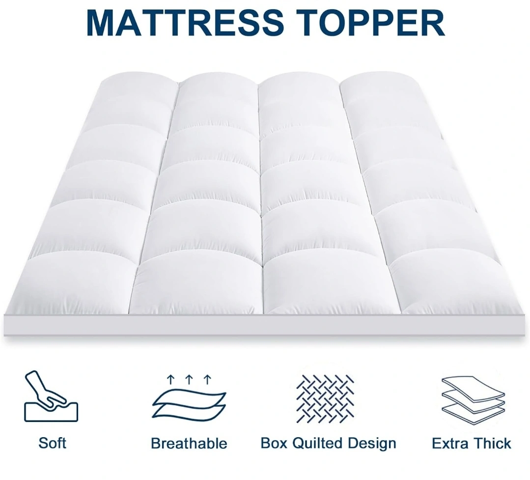 38Queen size mattress topper and fitted sheet. Deep pockets fit mattresses 8-21 inches. Soft, breathable, extra thick, box quilted design. Excellent condition.