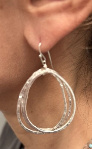 Oval Tear Drop Hoops Pierced Earrings - 3 Hoops