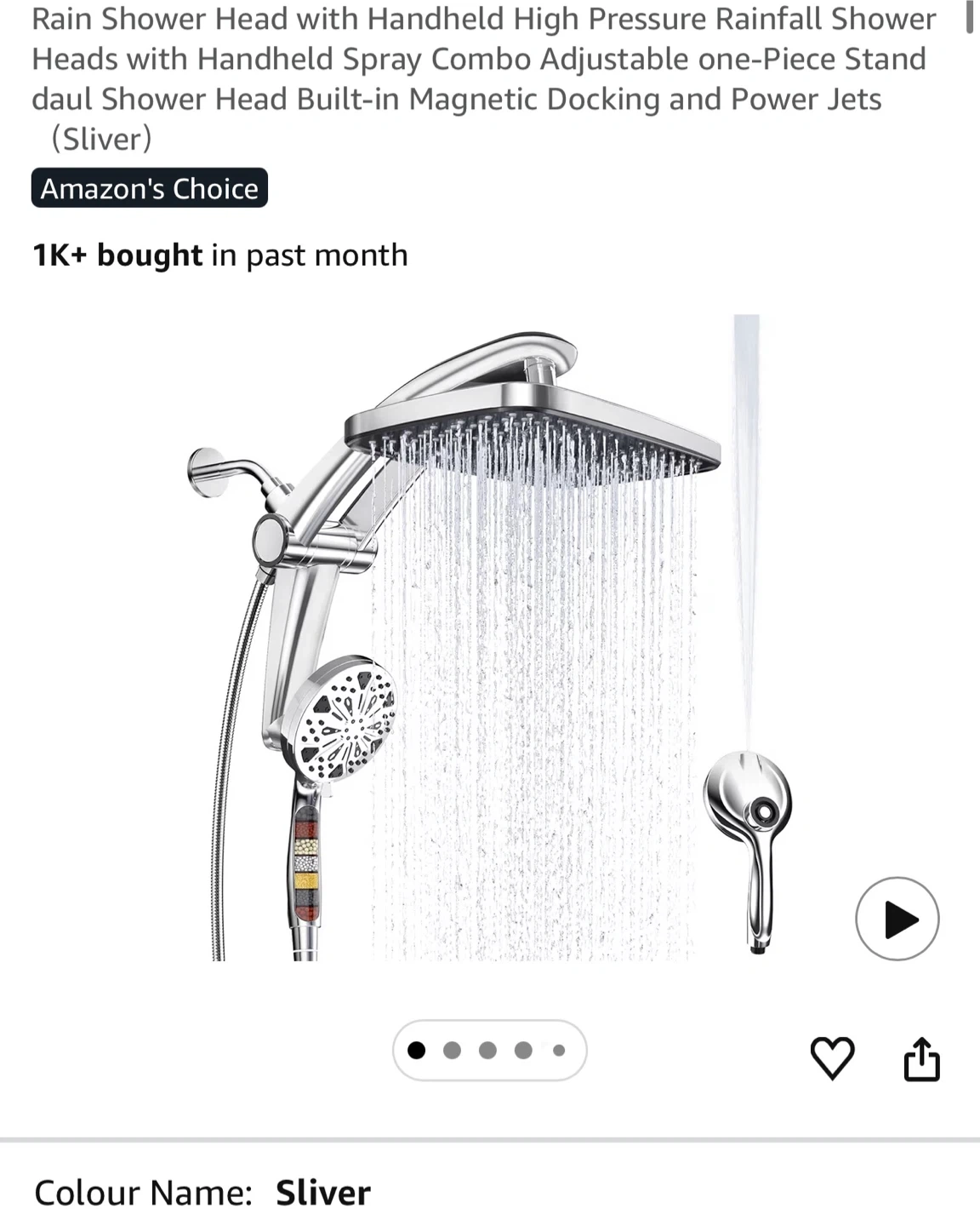 Rain Shower Head with Handheld Spray Combo - Silver RSH8