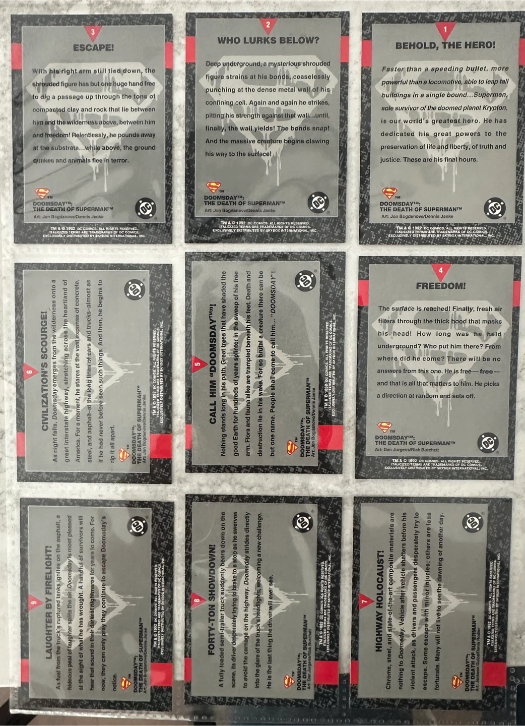 1992 DC DOOMSDAY “DEATH OF SUPERMAN” COMPLETE TRADING CARD SET