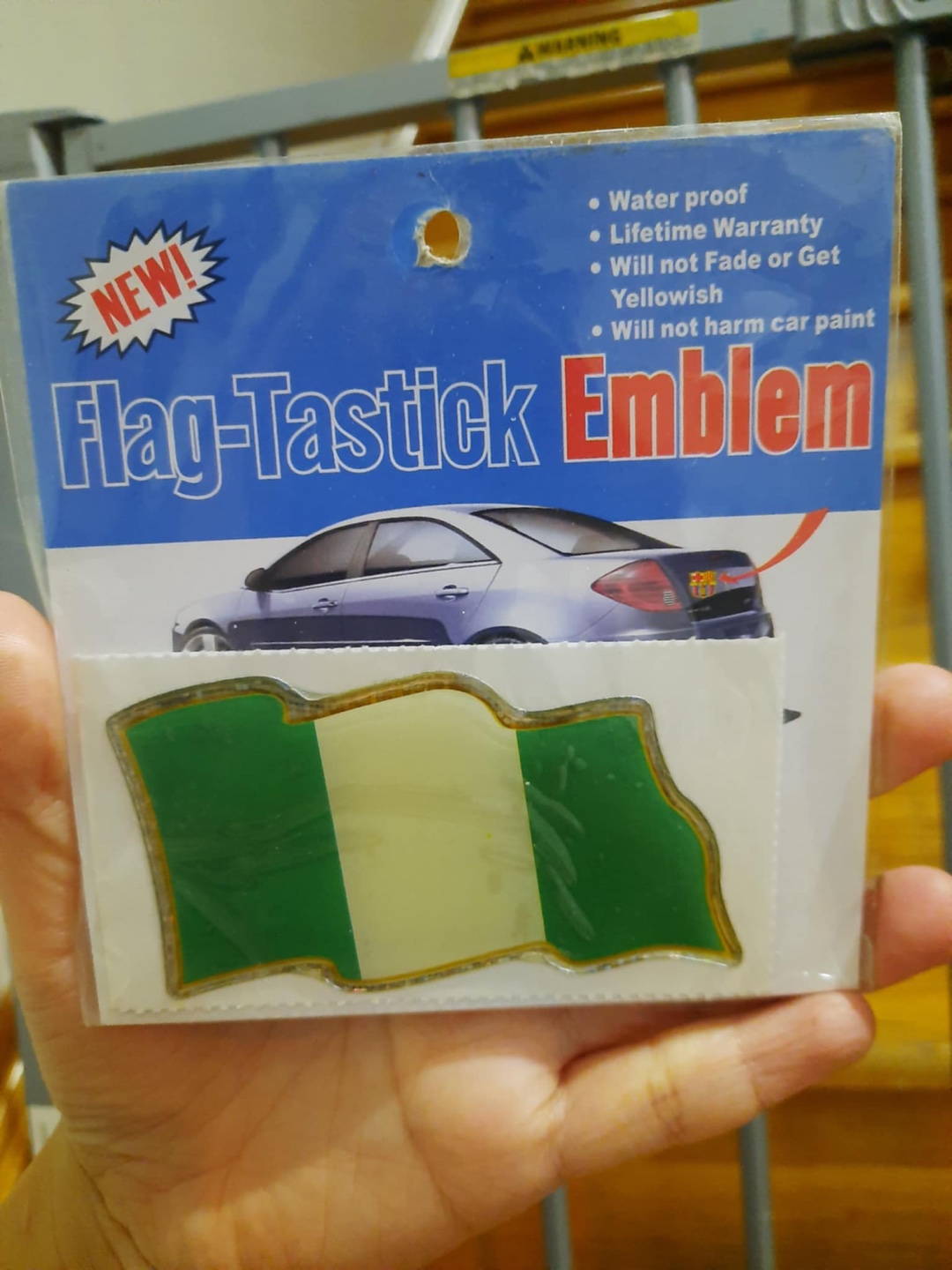 Brand new Flag-Tastick Emblem of Nigeria. It's waterproof and guaranteed not to fade or get yellowish. It also won't harm your car's paint. Originally bought for $3.00 Now for only $1 each