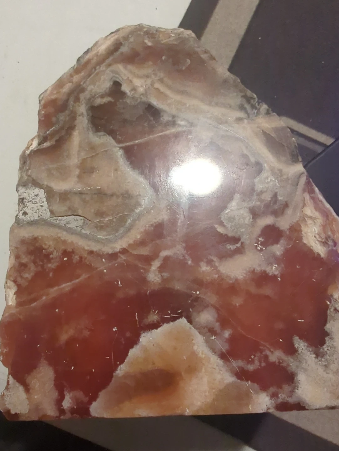 Beautiful agate slice(onyx) with warm, layered colours. It has a unique, natural pattern. This piece would make a lovely decorative accent.