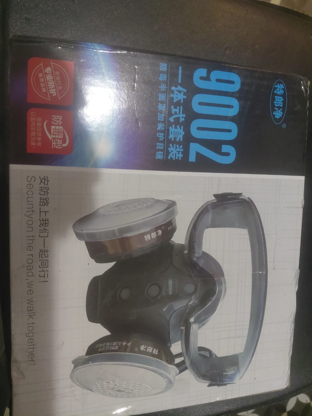 This is a TBP 9002 gas mask respirator. It includes a mask and filter cartridges. Respirator made of durable materials.