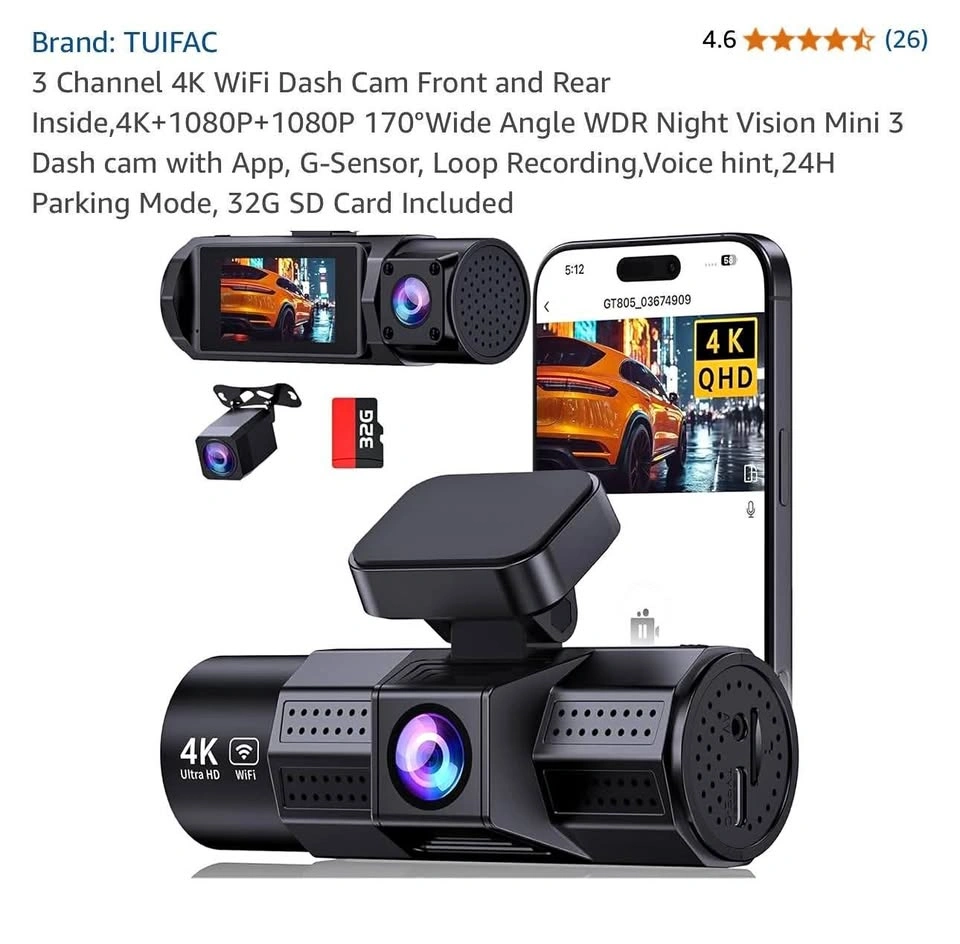 New 3-Channel 4K Dash Cam (Front/Rear/Inside)
