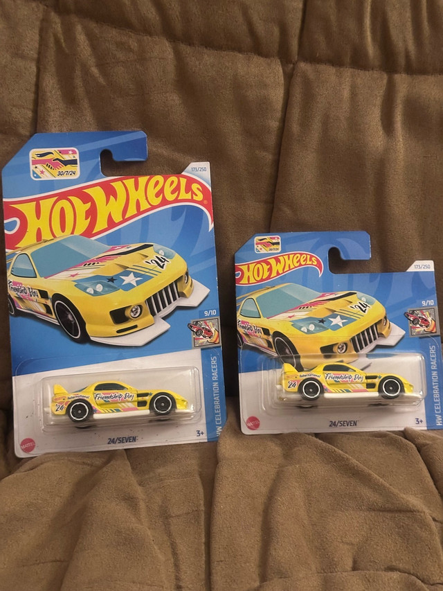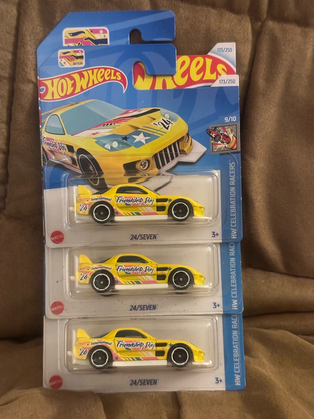 I'm selling a set of new Hot Wheels Mazda RX7 toy cars. These collectible cars are in mint condition, still sealed in their original packaging. A great addition to any Hot Wheels collection or a fun gift for car enthusiasts! Each car features detailed design and vibrant colors, making them stand out. The Mazda RX7 model is a classic and highly sought after by collectors. If the ad is up, they're available!