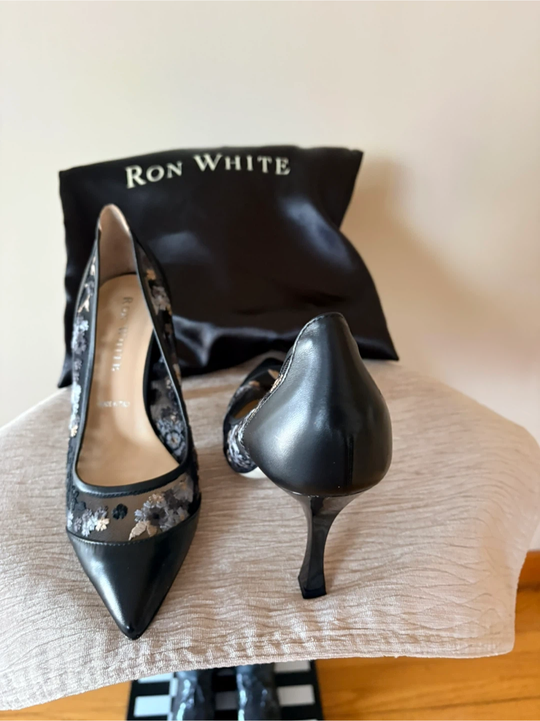 Ron White Black Floral Mesh Pointed Toe Heels