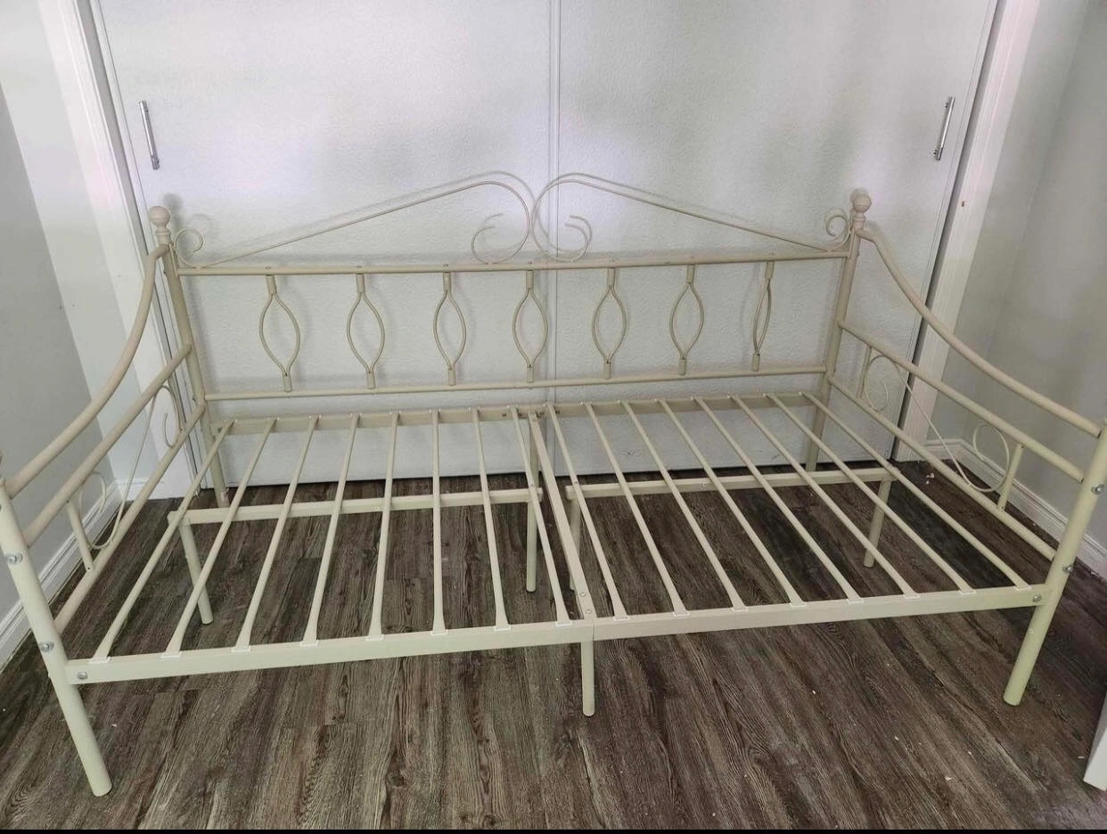 Buy & SellMetal Daybed Frame w/newer MattressMetal Daybed Frame w/newer Mattress$100Beige metal twin daybed frame & newer mattress - taking up spaceConditionLike newDimensions78”x40”x36”WHERE TO MEETCheck LocationView MapSELLERCatLakeport686 reviews1 chats·1 favorites·76 viewsSEND CHAT TO SELLERHi Cat! I’m interested in your listing.Hi Cat! I’m interested in your listing.Get the Karrot app to chatSign In to chat