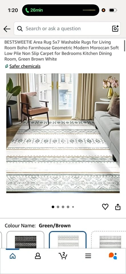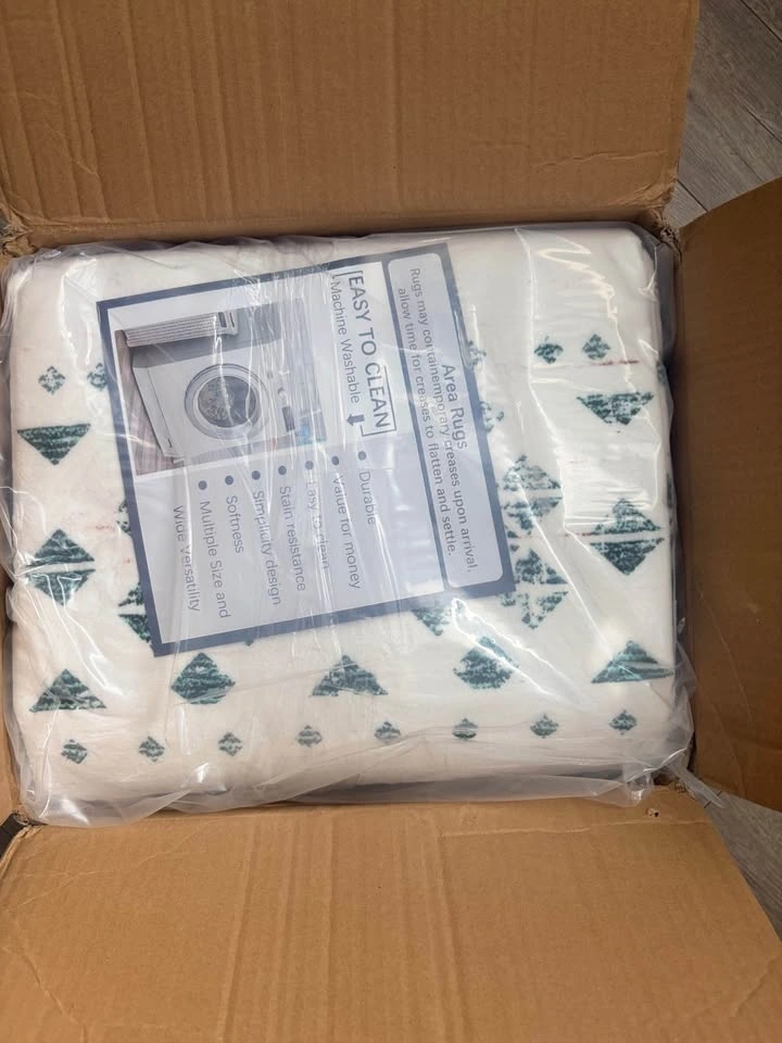 Brand new 5x7 (152 cm x 213 cm) living room rug with a modern design that complements most decor. Machine washable and easy to care for. Features a non-slip TPR composite bottom and is water-repellent and stain-resistant. The material is pet-friendly and suitable for high traffic areas.