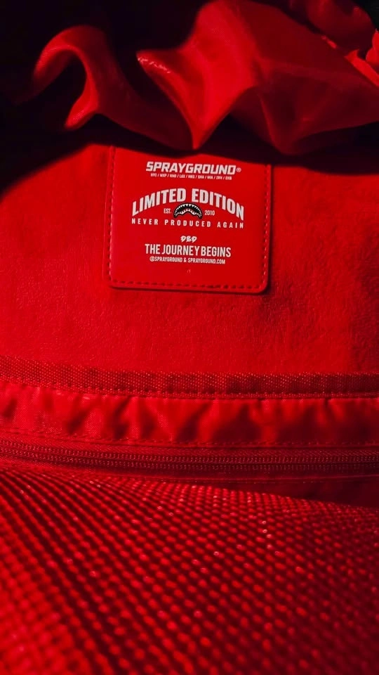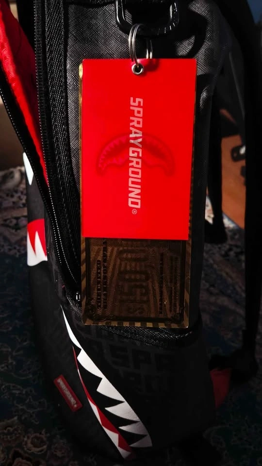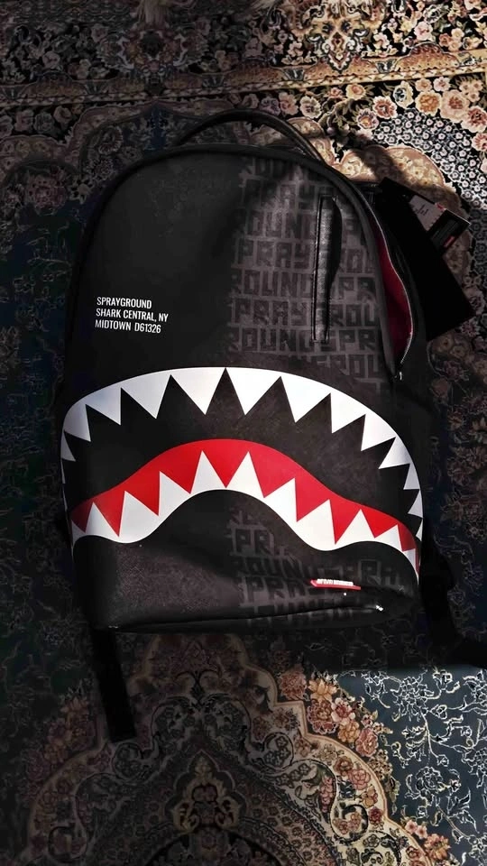 Awesome SPRAYGROUND backpack. Brand new with tags still on. Cool shark mouth design. Black color with red and white teeth. Inside has red lining. Padded straps for comfort.