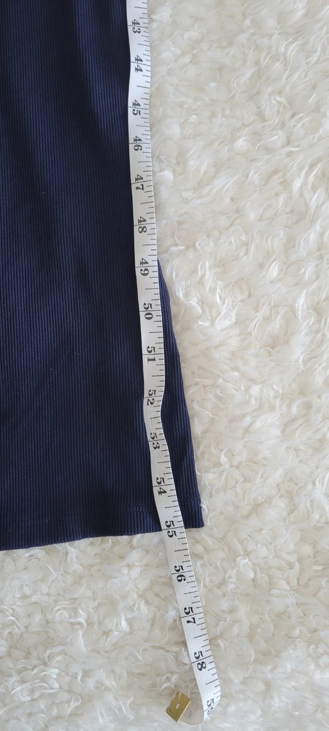This is a brand-new with tag still attached, Kamo ribbed tank dress in navy. It's made of a comfortable, stretchy material. It has a built-in padded bra. The dress has a flattering fit and a subtle Kamo logo. It's perfect for casual wear or layering!