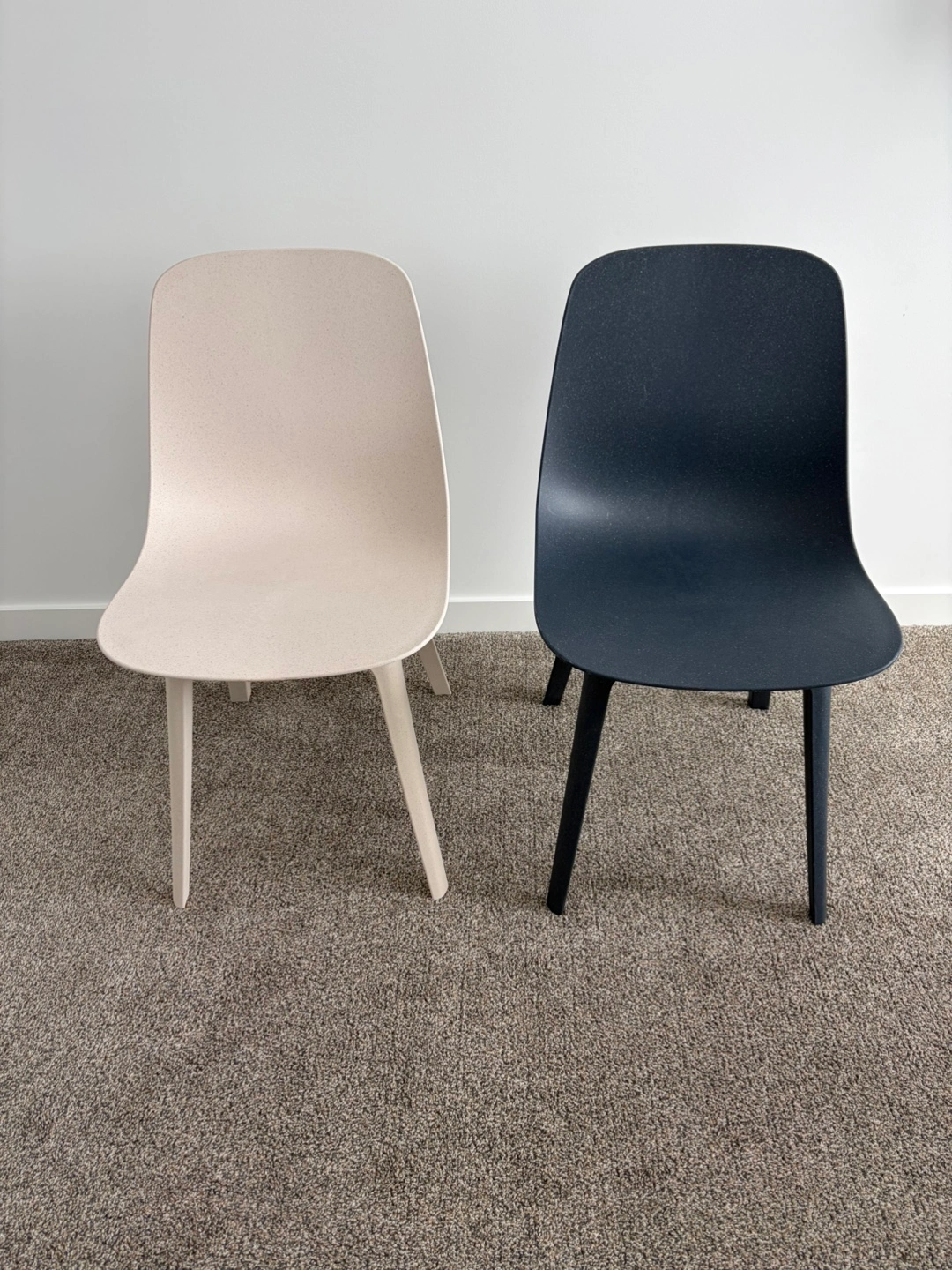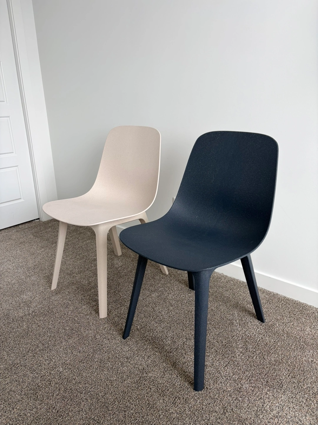 It's made of a durable composite material. Lightweight and stackable for convenience!