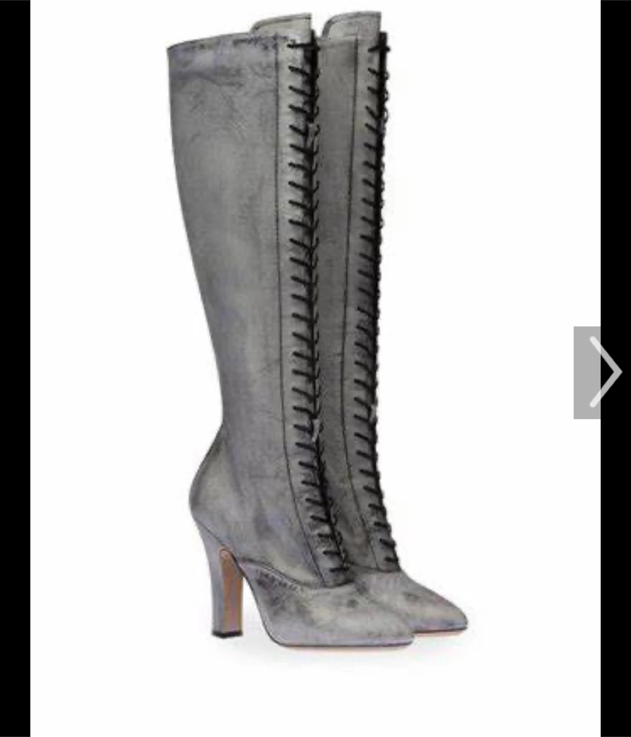 Miu Miu Stylish grey lace-up knee-high boots full zip inside . Features a pointed toe and a comfortable heel. leather. These boots would add a unique flair to any outfit! Brand new EUR 35