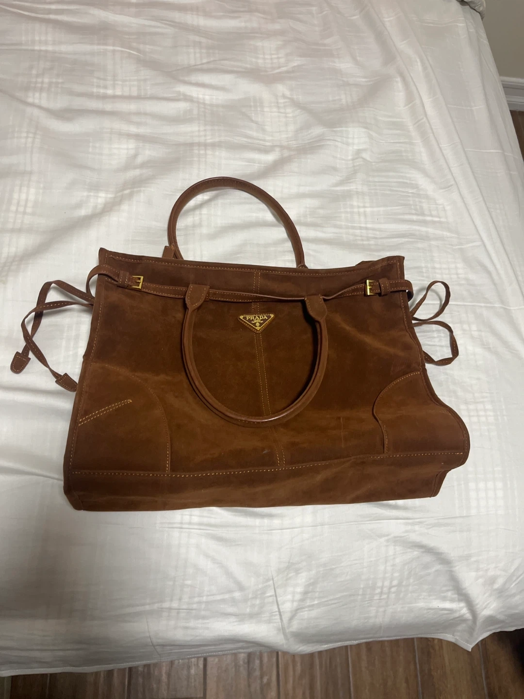 Prada Bonnie Large Suede Handbag Cocoa Brown
