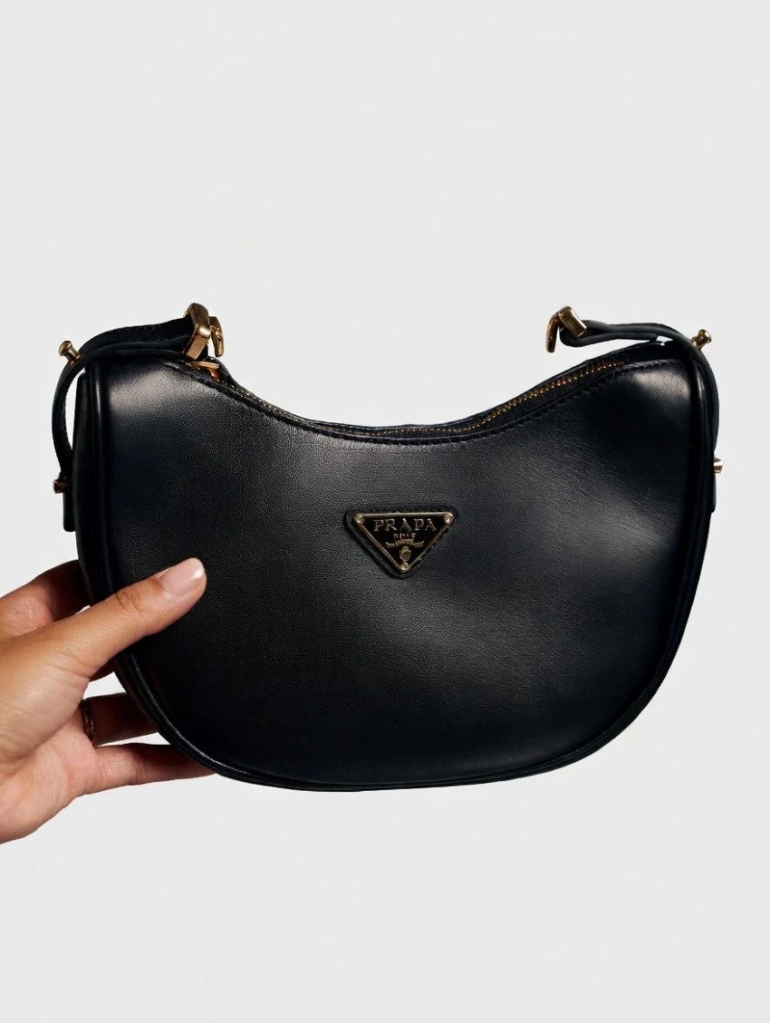 Prada Black Leather Crescent Shoulder Bag