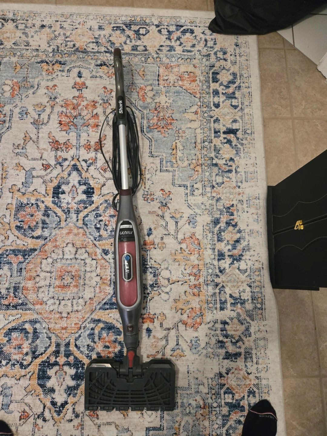 Shark Genius steam mop for cleaning floors. Comes with a reusable mop pad. It's great for sanitizing surfaces with steam!
