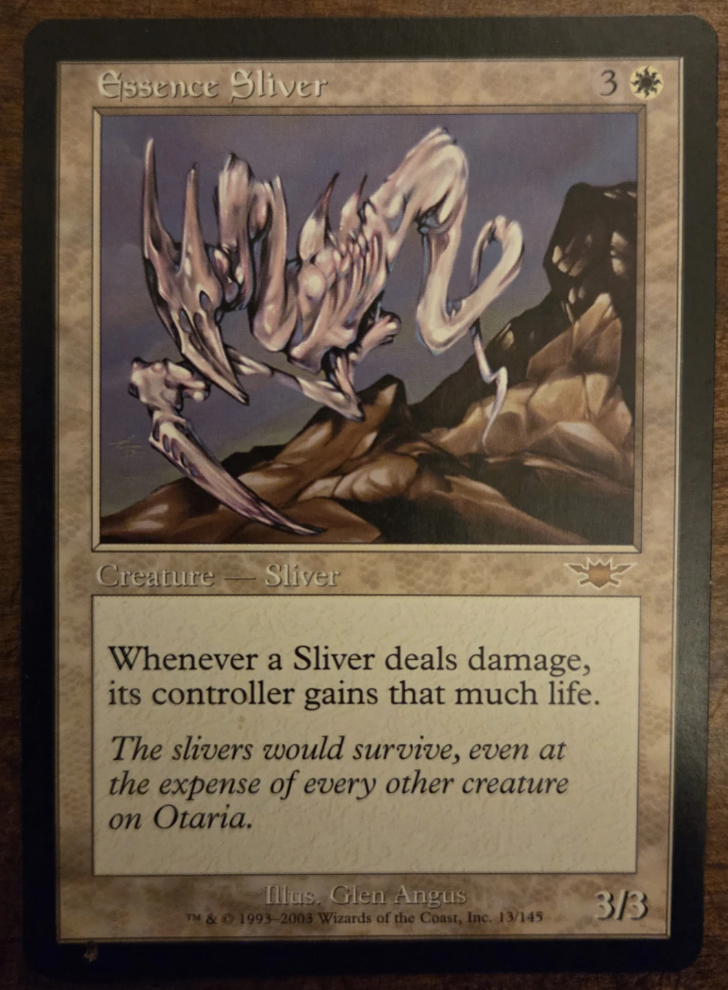 1 / 11 / 1Buy & SellEssence Sliver Magic The Gathering CardEssence Sliver Magic The Gathering Card$10Essence Sliver creature card from Magic: The Gathering. 2003. MTG Trading Card Game. Legions.ConditionLike newWHERE TO MEET20 Scrivener SquareView MapSELLERverifiedJesseRosedale1000+142 reviews0 chats·1 favorites·6 viewsSEND CHAT TO SELLERHi Jesse! I’m interested in your listing.Hi Jesse! I’m interested in your listing.Get the Karrot app to chatSign In to chat