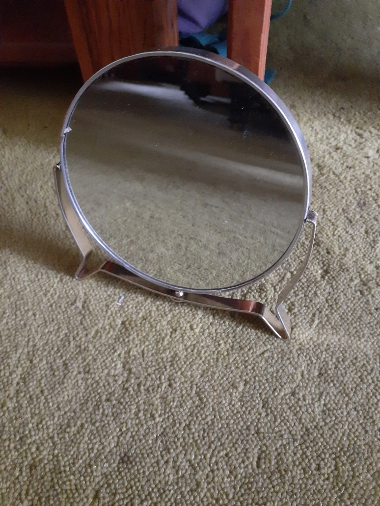 Won't collect dust as other standing mirror, just tuck away the tiny latch and stored away ( pic 3)