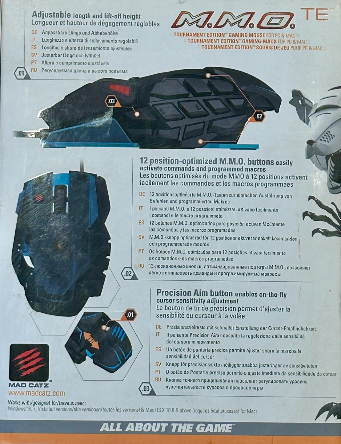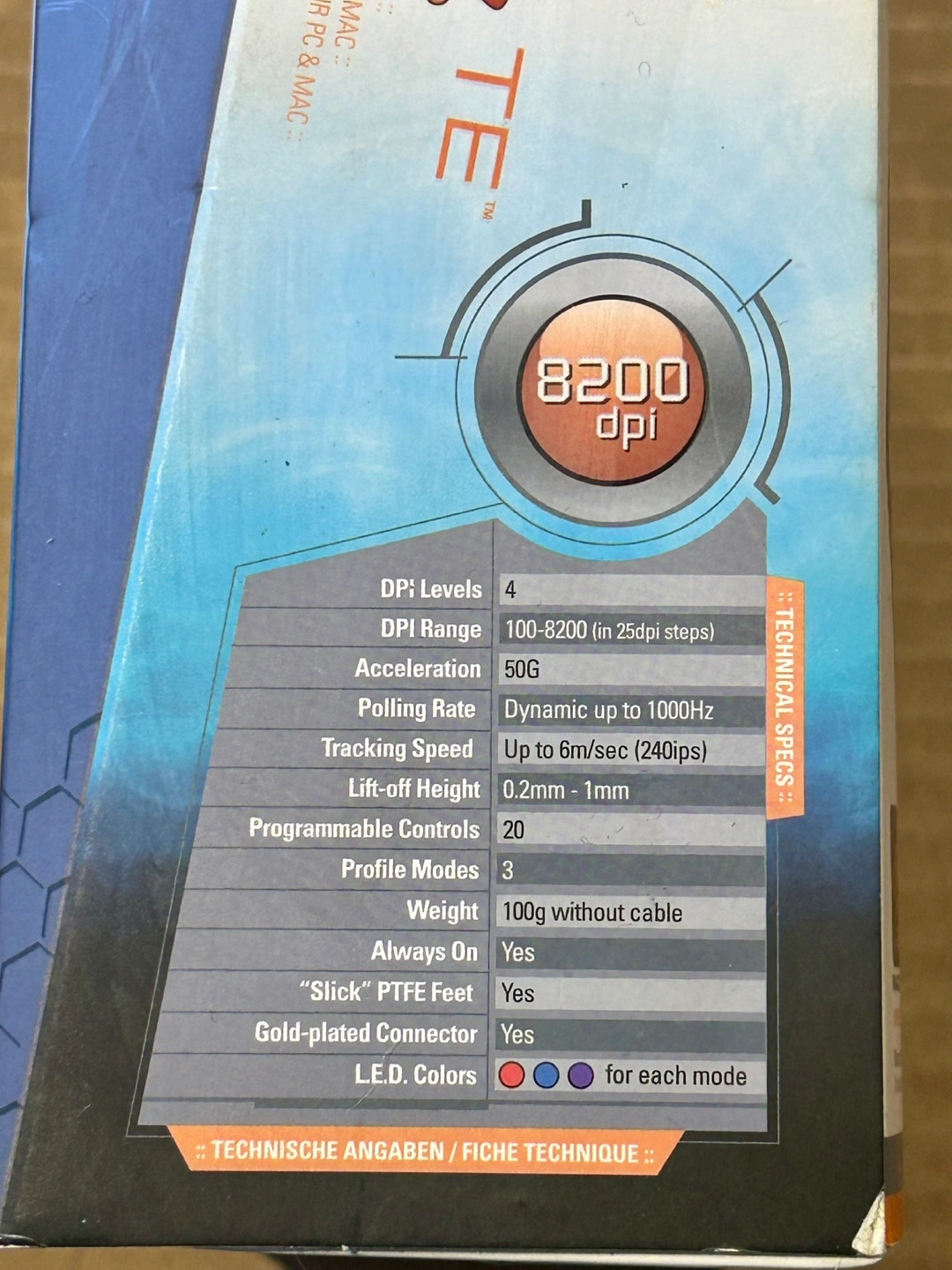 Programmable gaming mouse. Features 60 programmable commands, 8200 DPI, adjustable lift-off height and weight. 12 position-optimized MMO buttons. Includes Precision Aim button for on-the-fly cursor sensitivity adjustment. New in box. Moving sale. See my other items. Pick up in Rundle, NE Calgary. If listed it is still available!