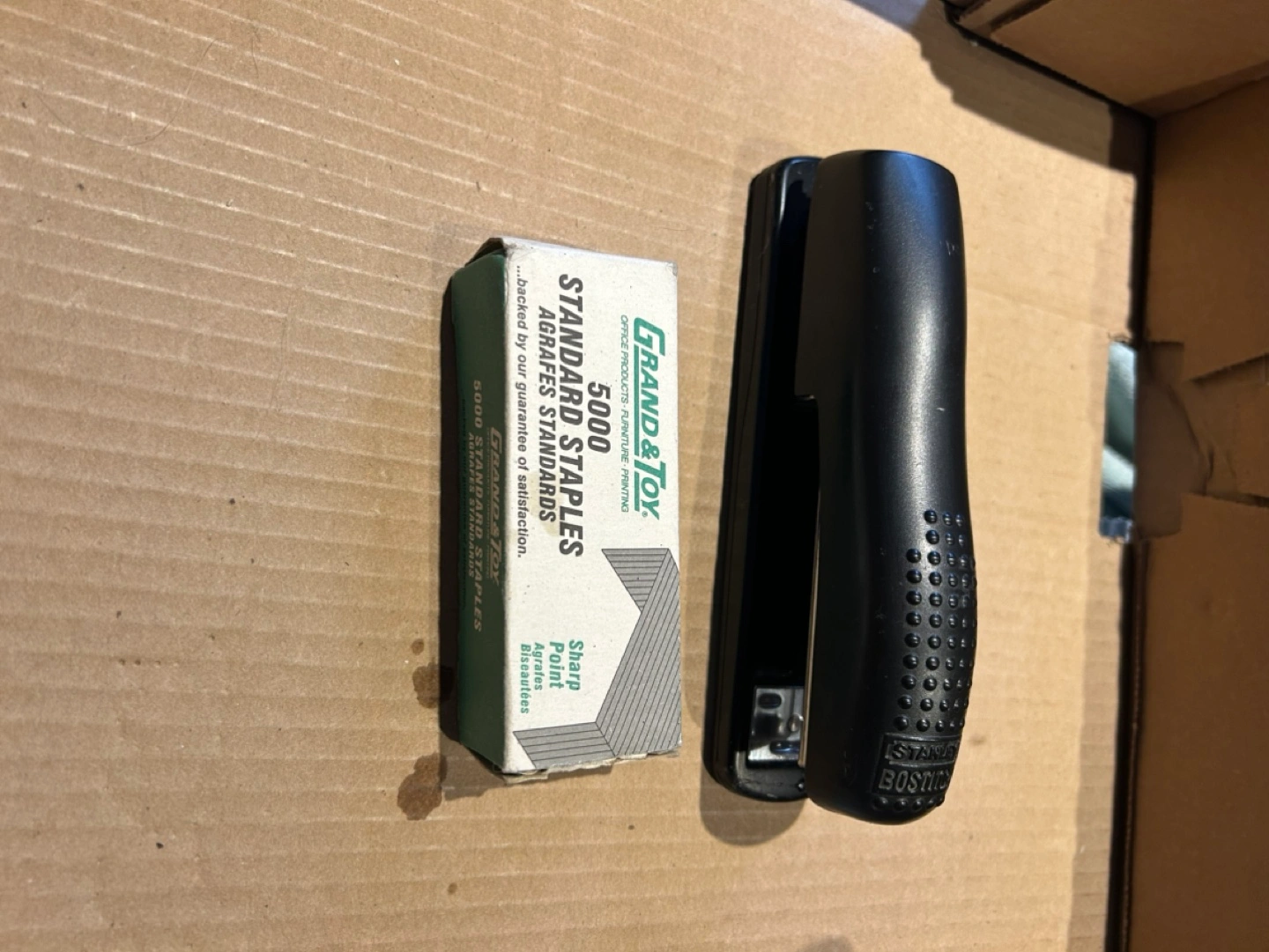 Black heavy-duty stapler. Includes box of 500 standard staples. Great for home or office use.