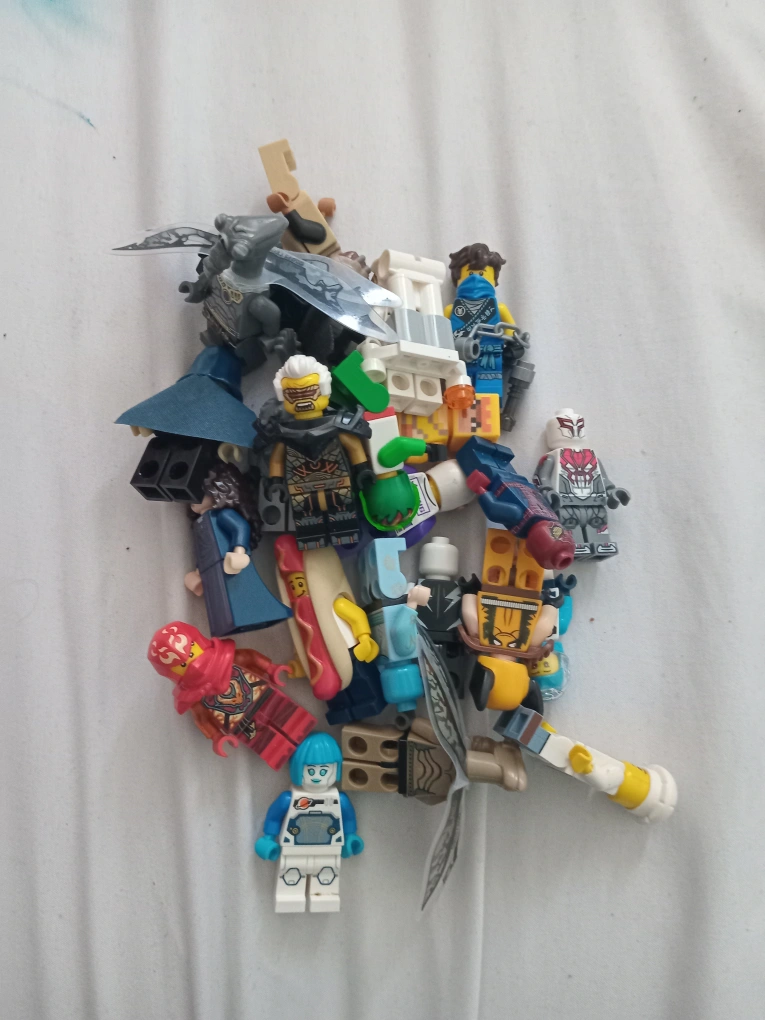 Collection of LEGO minifigures. Various characters and accessories included. Great for collectors or builders. Some minor wear.