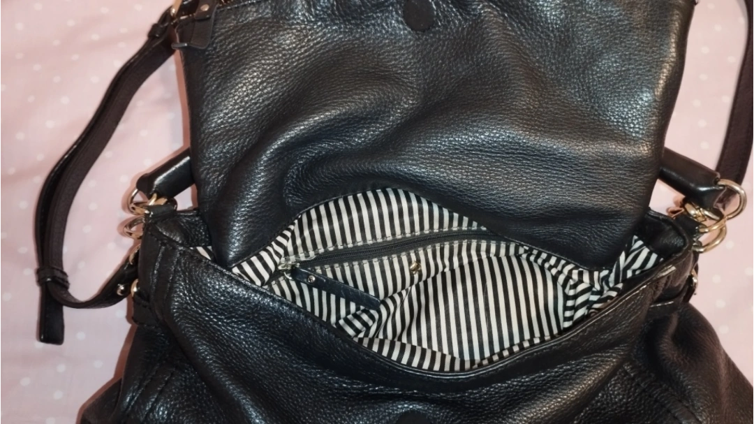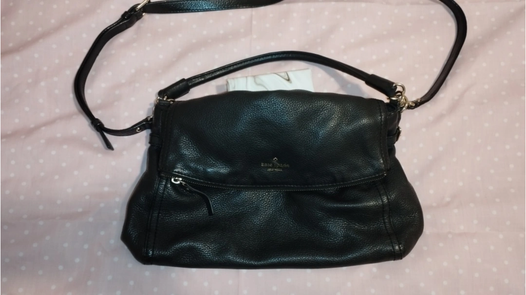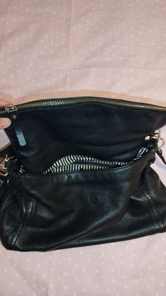 802Black leather shoulder bag. Features a zip closure and adjustable strap. Pet and smoke free home. Pick up from Marine Drive skytrain station. Cash only.