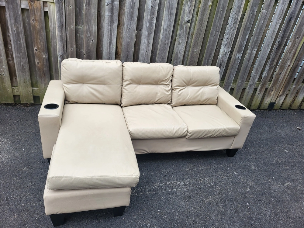 Buy & SellBeige Sectional Sofa with OttomanBeige Sectional Sofa with Ottoman$180Cream coloured leatherette sectional sofa. Includes a matching ottoman. Features two cupholders. Good for small spaces.ConditionLike newWHERE TO MEETWellandView MapSELLERverifiedBelindaWelland801 review1 chats·0 favorites·67 views