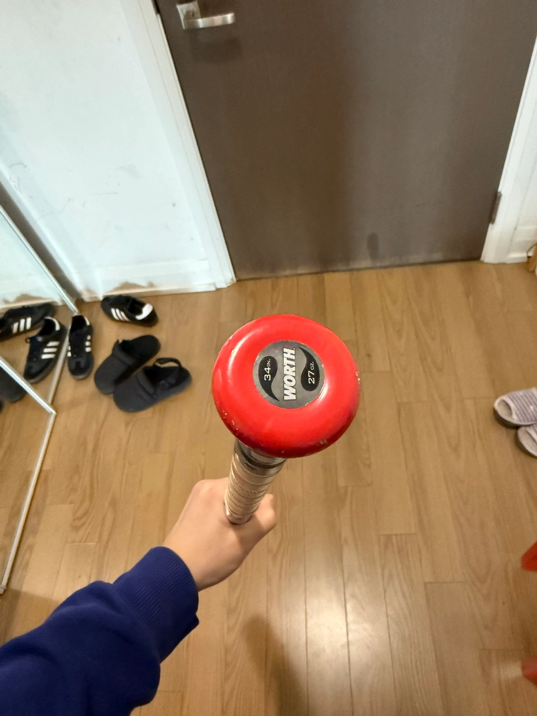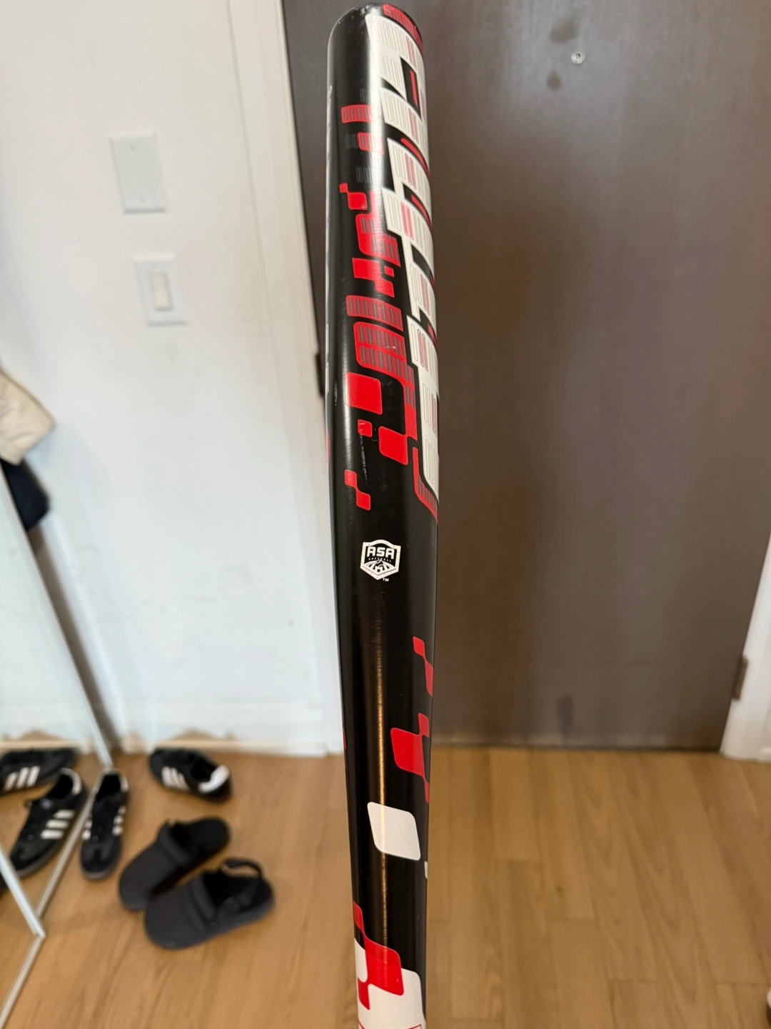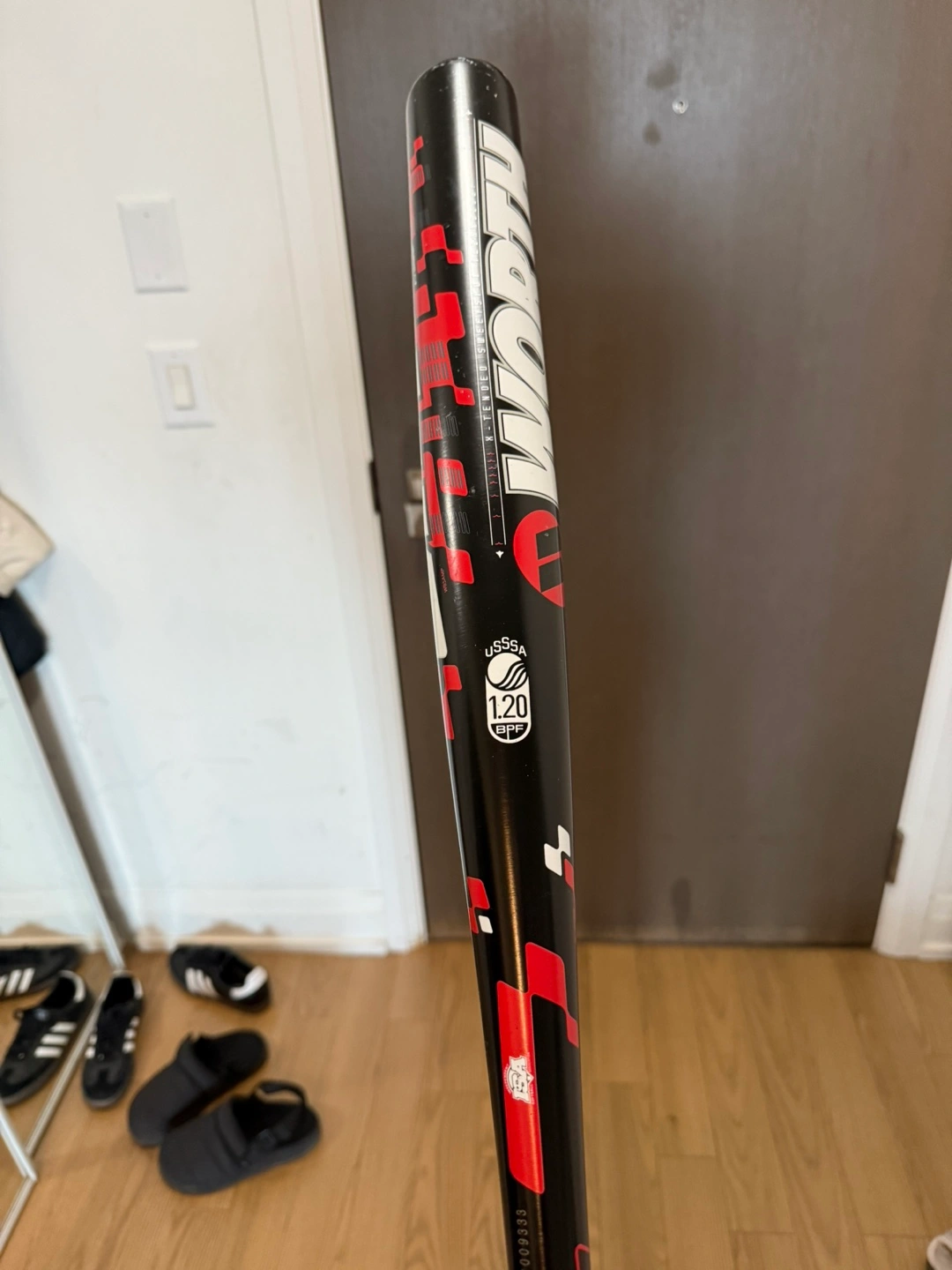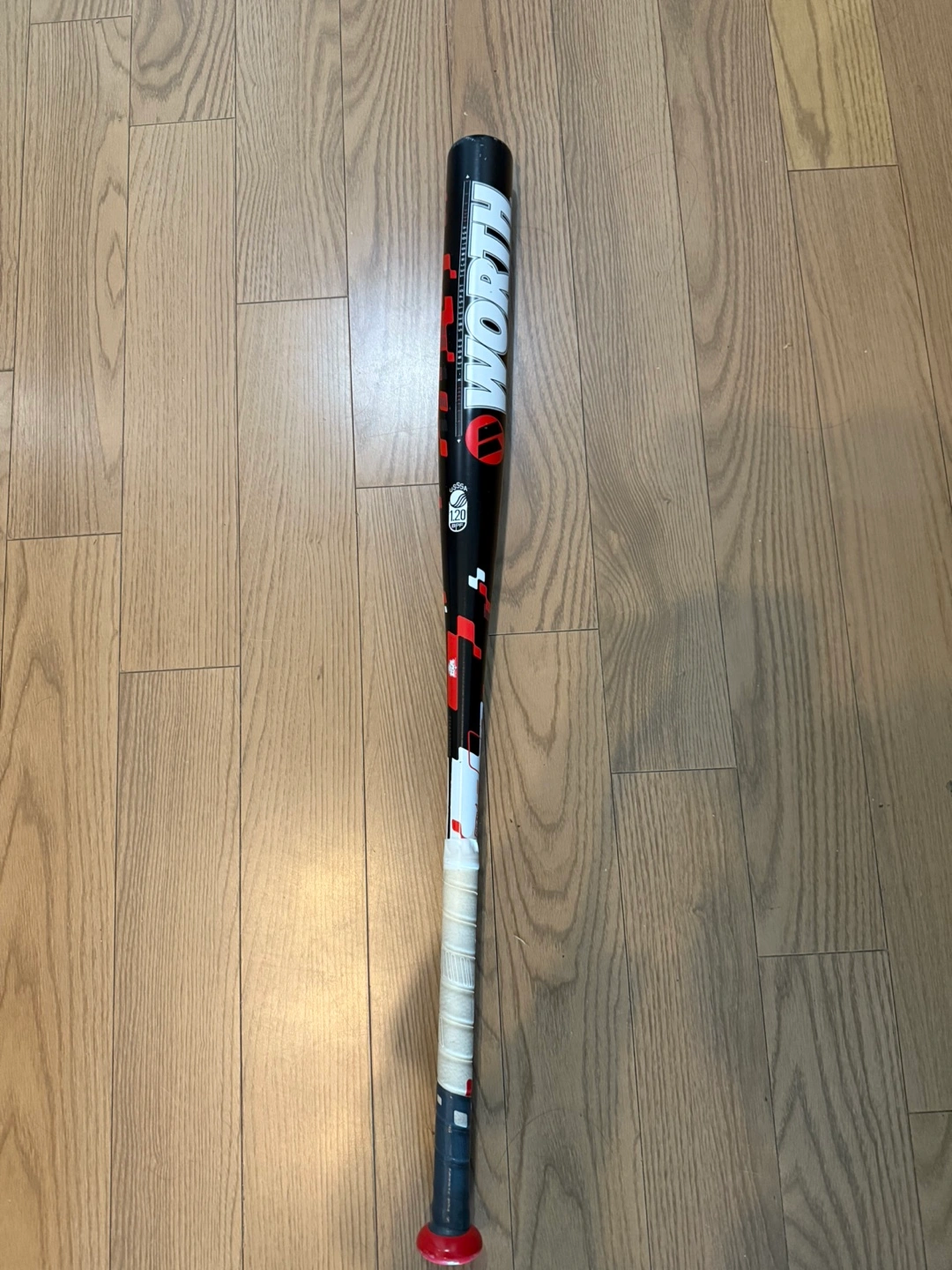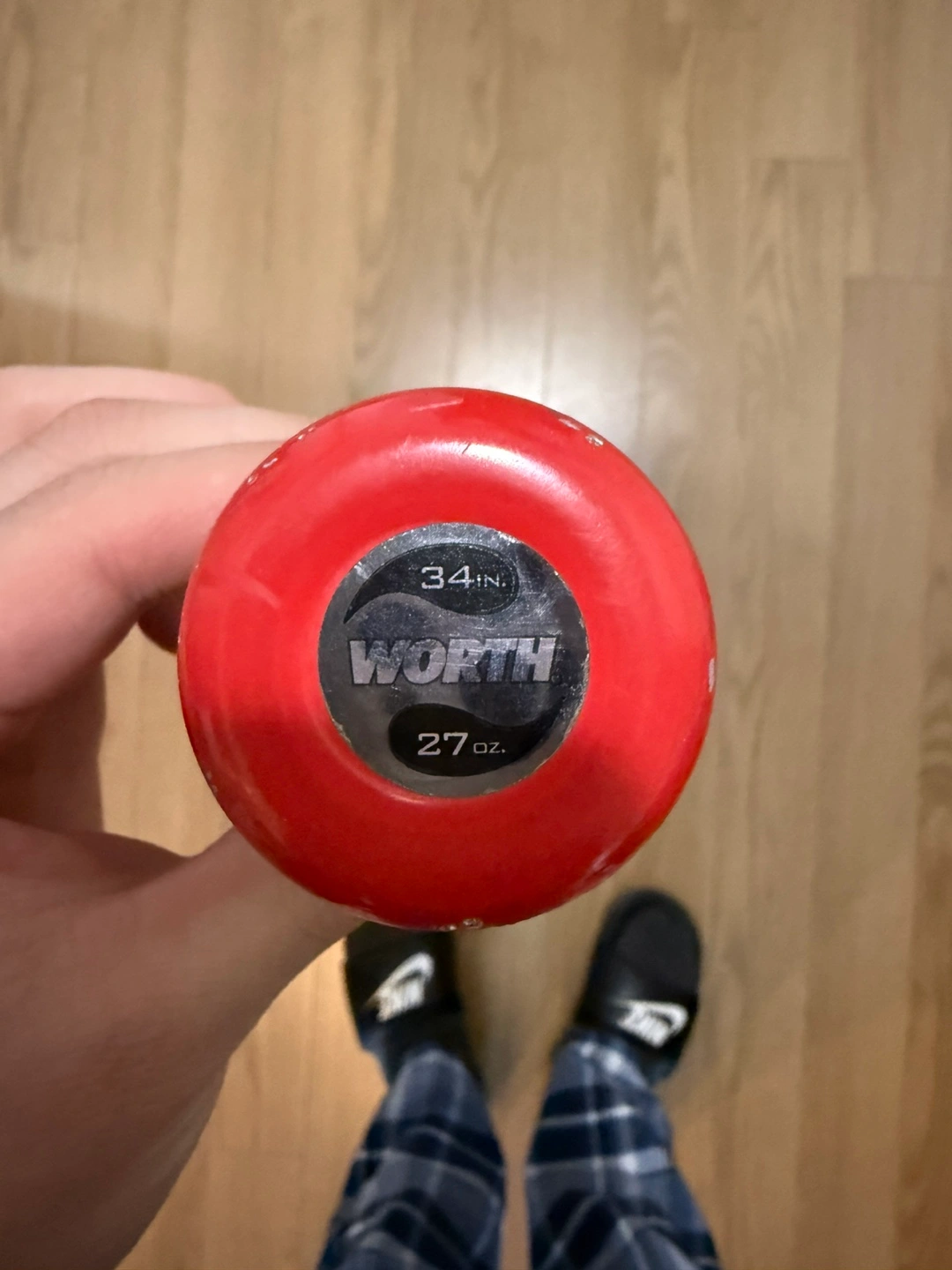 149Used Worth baseball bat. 34 inches long, 27 ounces. USSSA approved. Black and red colour scheme. Shows some wear.