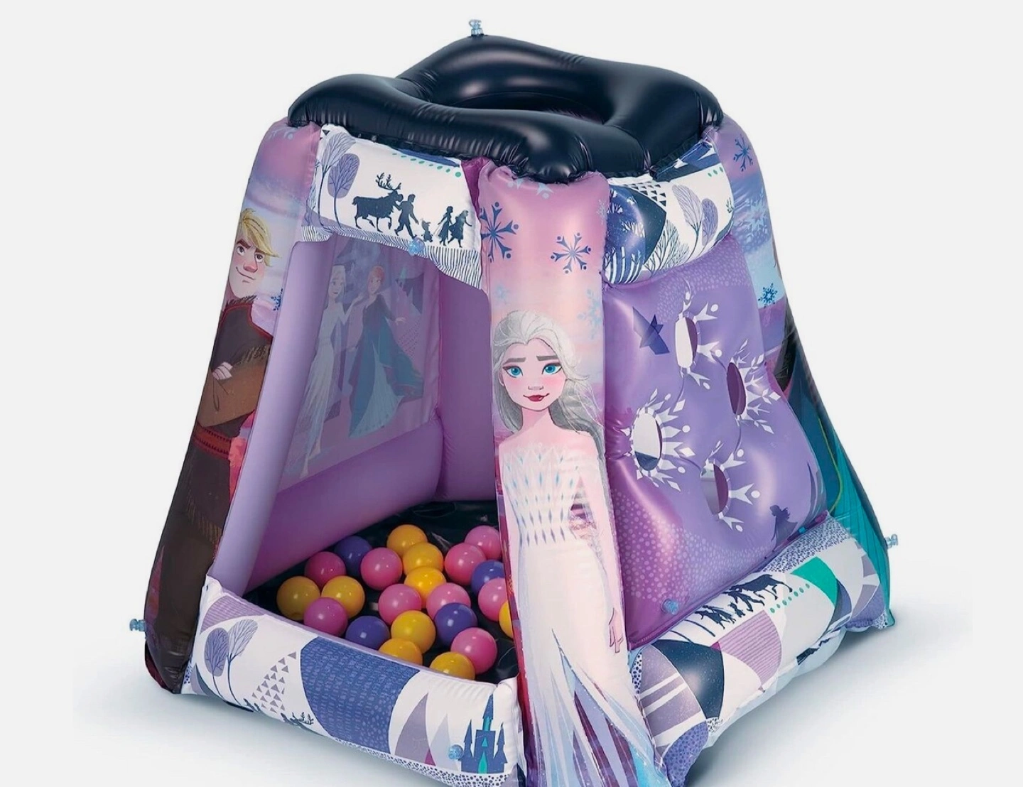 Inflatable ball pit featuring Frozen characters. Includes numerous colourful plastic balls. Great for indoor play.