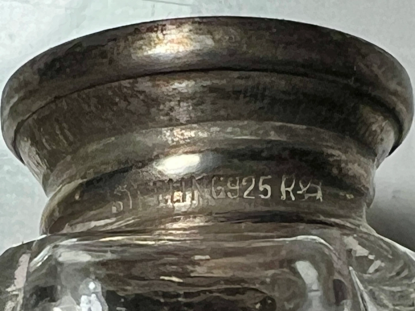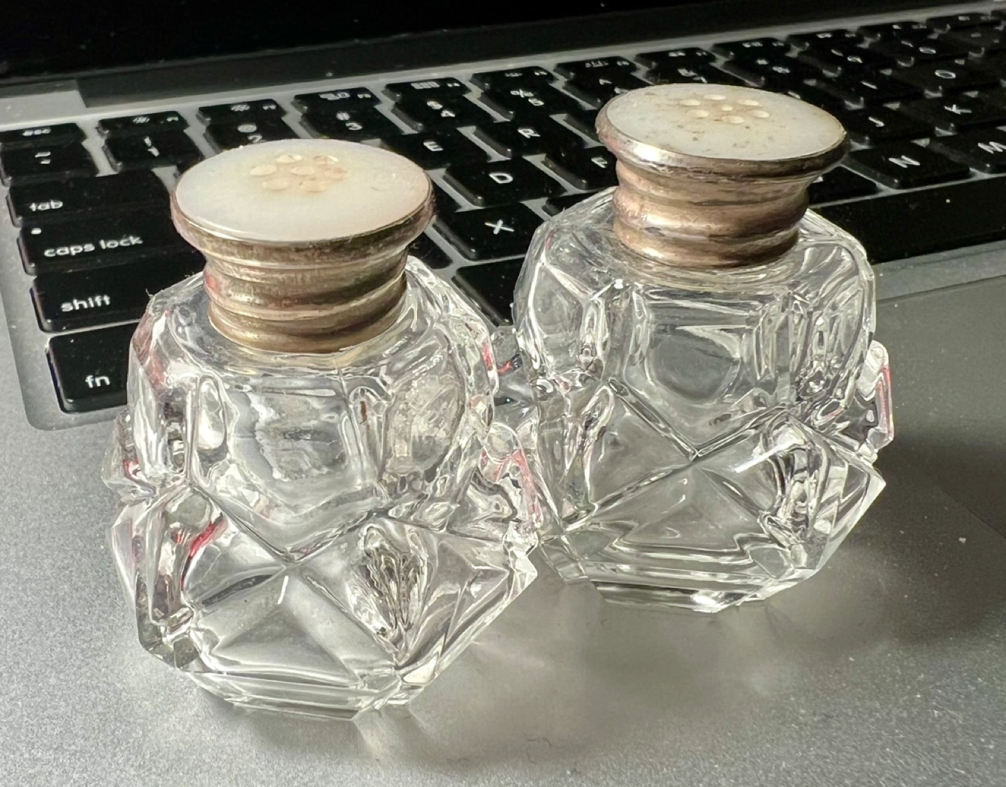 Vintage Crystal Salt and Pepper with Sterling Silver Tops