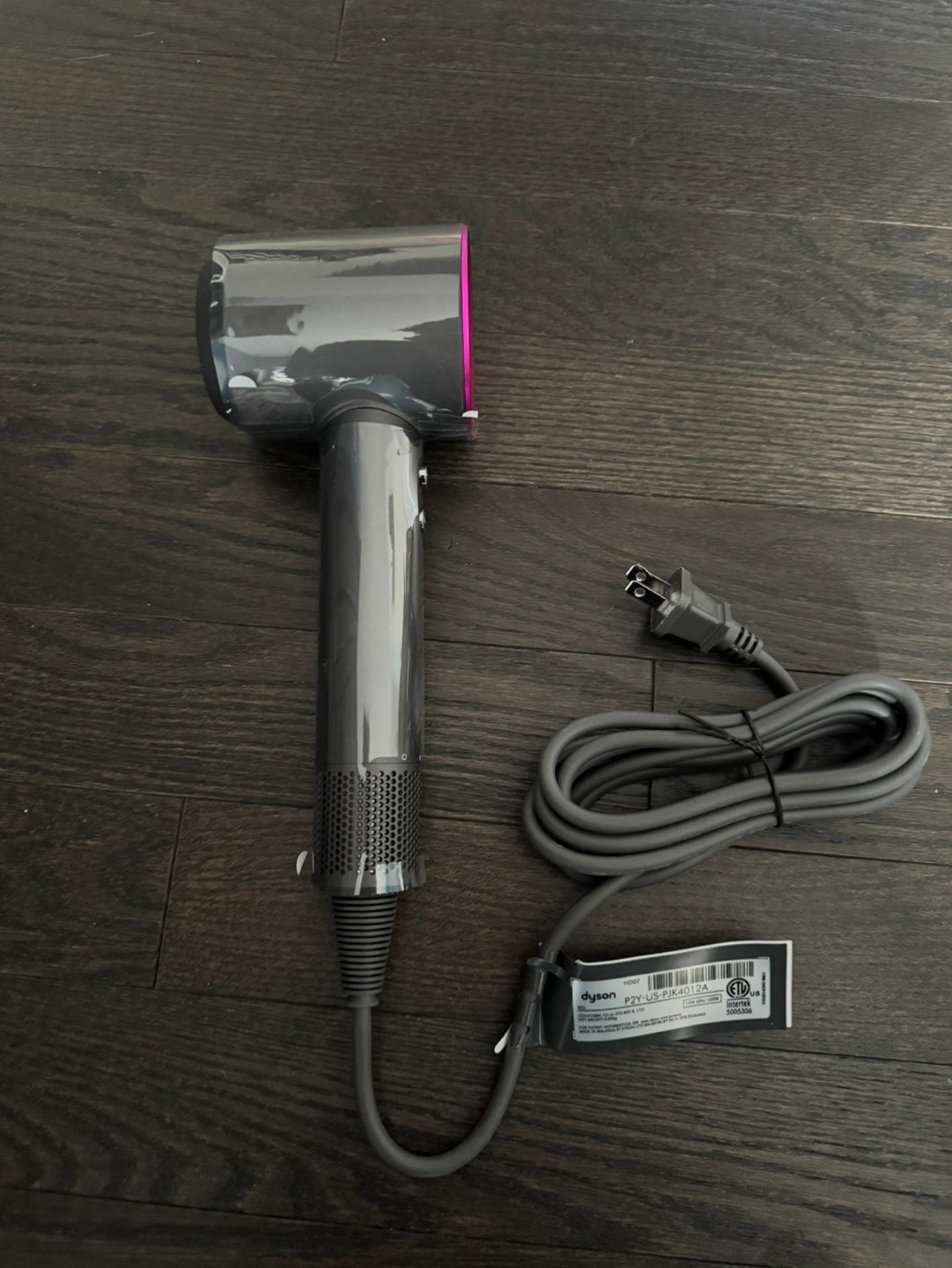 Brand new Dyson Supersonic hair dryer. Five styling attachments included. Fast drying, no extreme heat. Engineered for different hair types. Smooth, controlled styling. Helps protect natural shine.