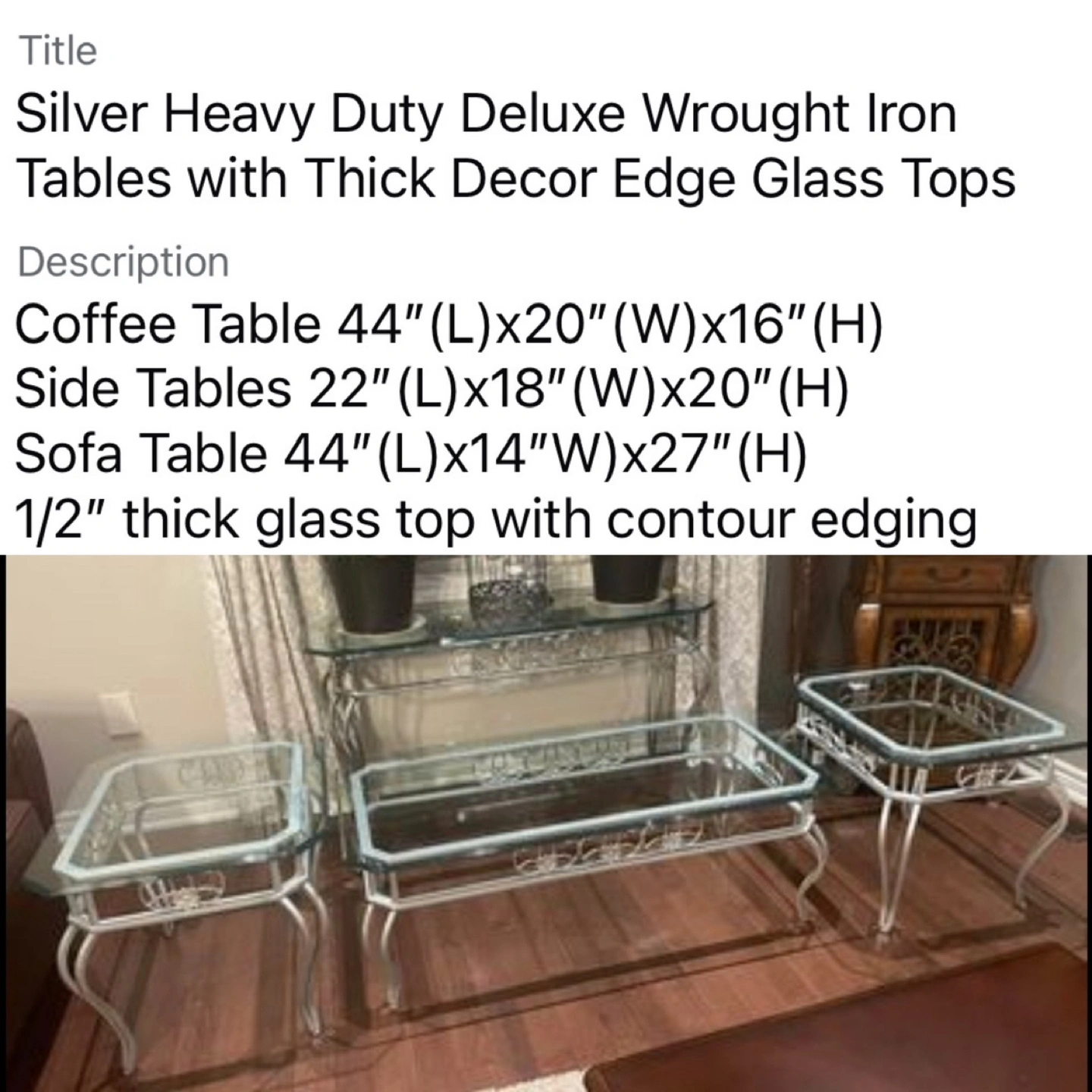 Buy & SellLuxury Coffee Table set with Thick Decor Edge Glass TopsLuxury Coffee Table set with Thick Decor Edge Glass Tops$120Coffee Table 44"(L)x20"(W)x16"(H) Side Tables 22"(L)x18"(W)x20"(H) Sofa Table 44"(L)x14"(W)x27"(H) 1/2" thick glass top with contour edgingConditionLike newWHERE TO MEETSouthfields CaledonView MapSELLERverifiedCostaSouthfields Village1103 reviews0 chats·0 favorites·40 views