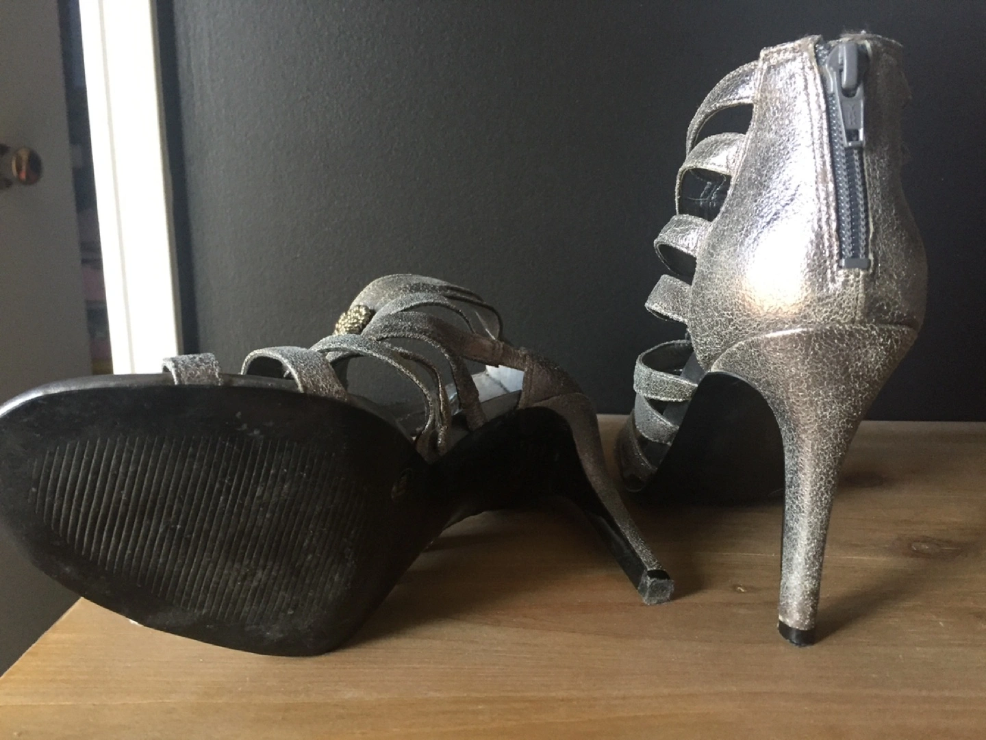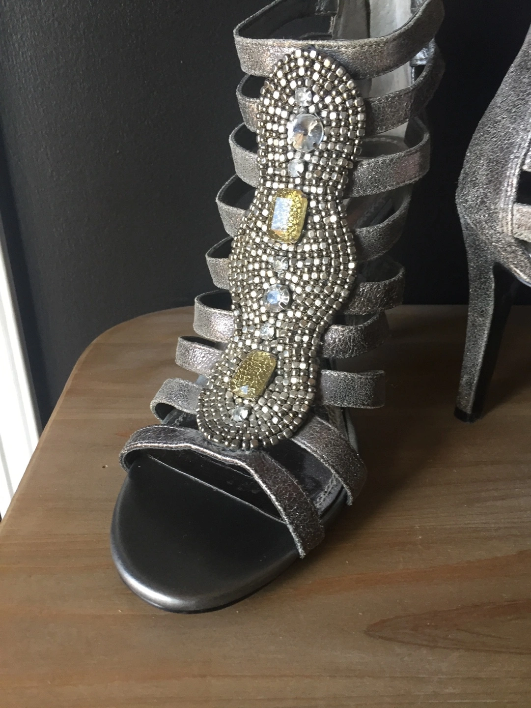 Gorgeous Silver Beaded Gladiator Heels - Size 8