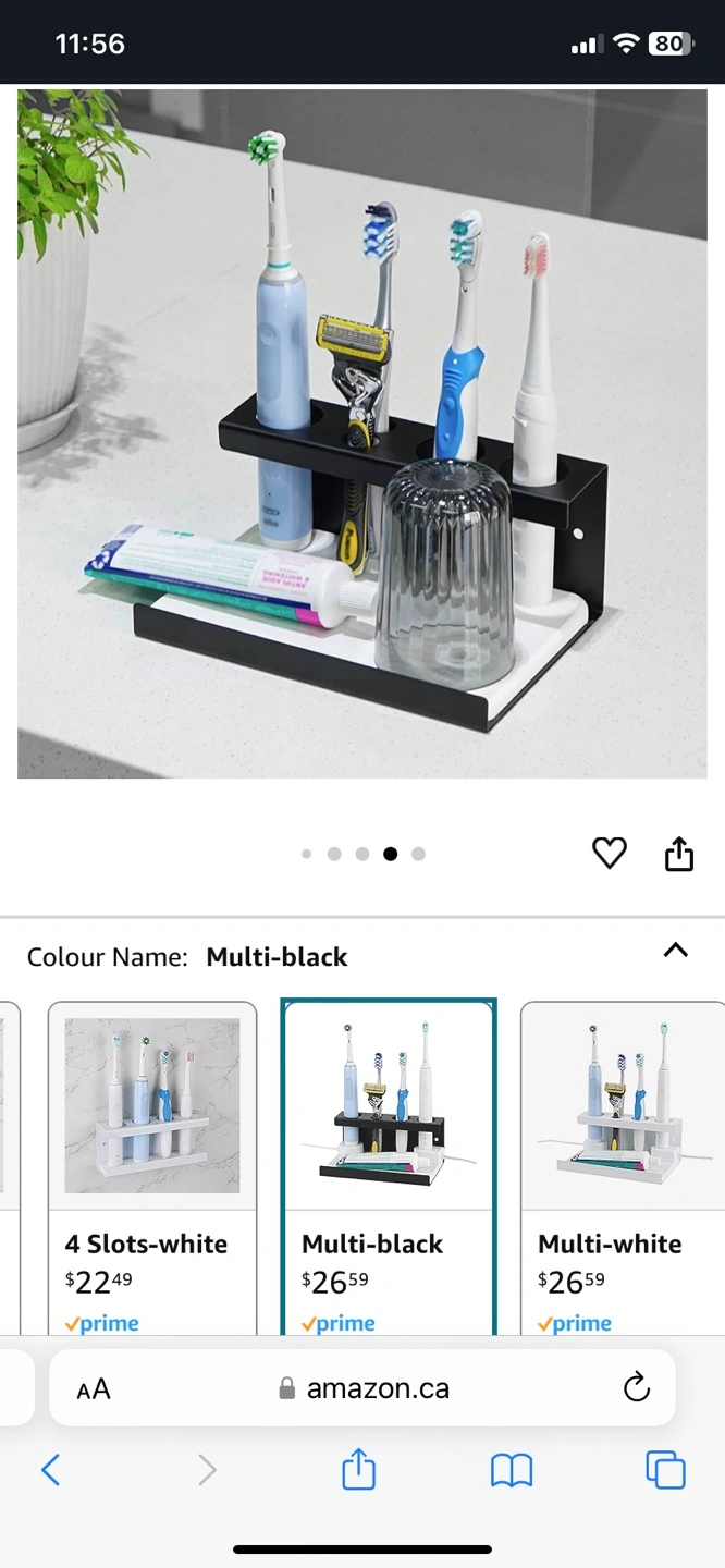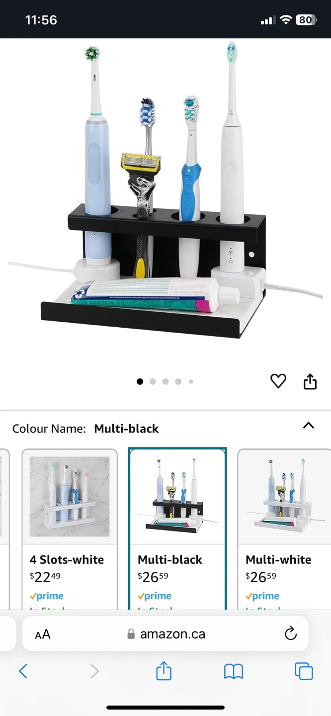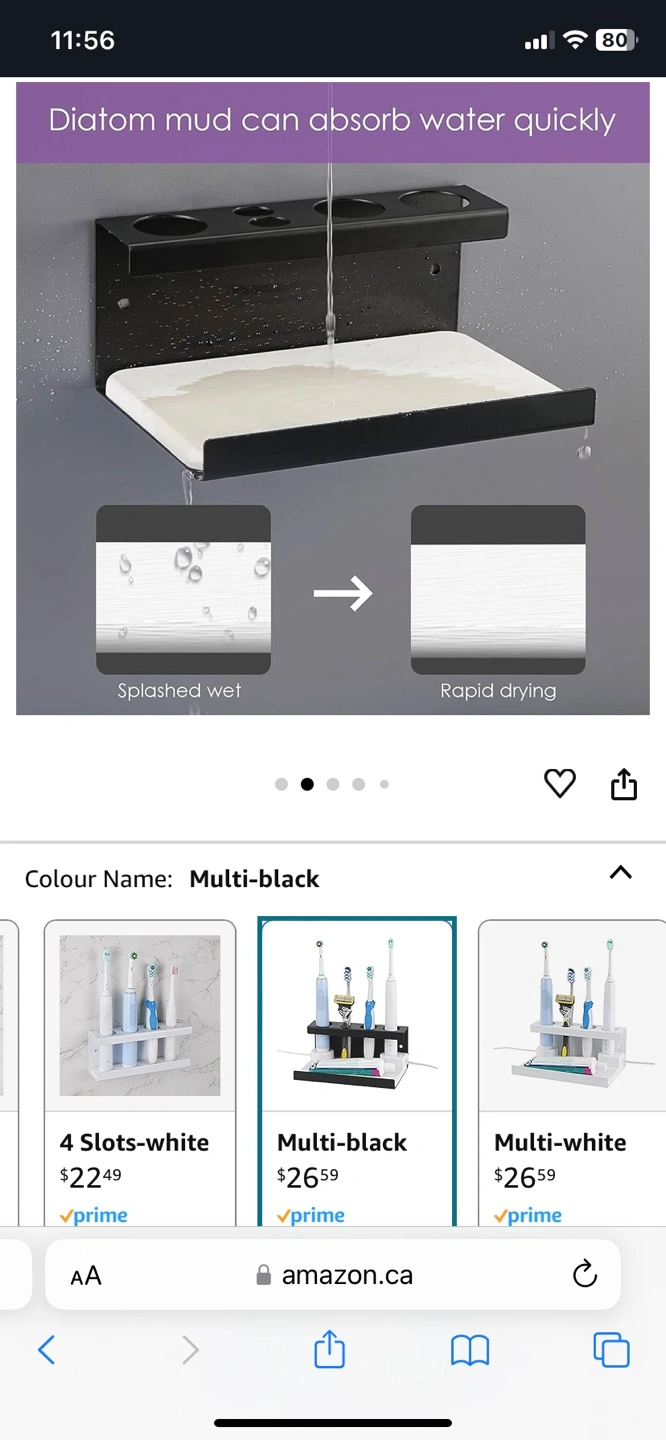 1000+Multi-black toothbrush holder. Four slots, holds electric toothbrushes, razors, and toothpaste. Diatom mud tray for quick drying. Wall-mounted or tabletop design. Great for saving space.