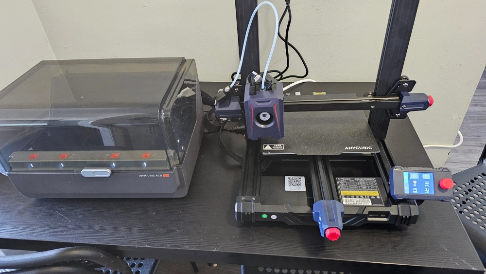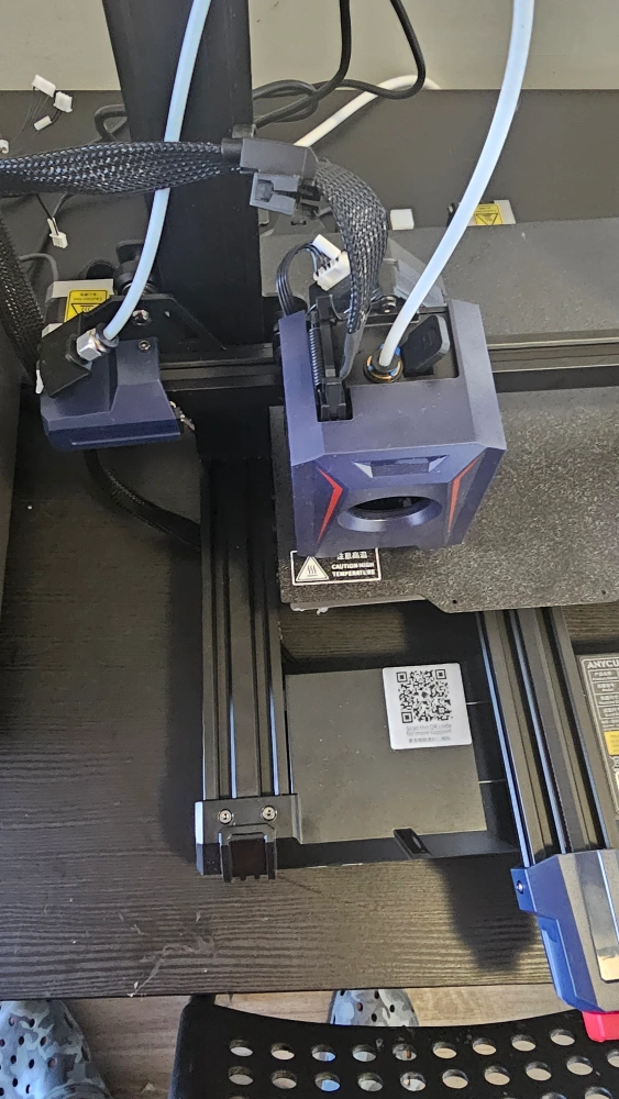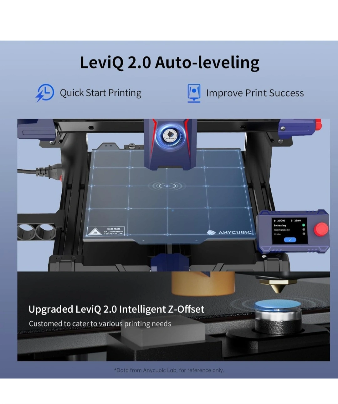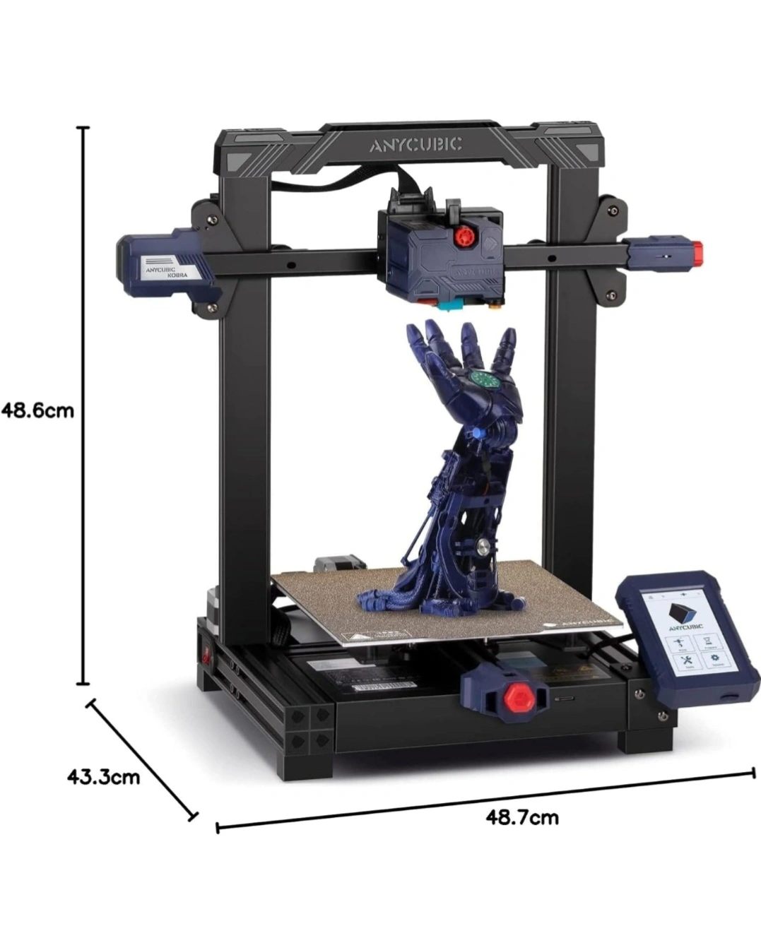 3D printer with auto-levelling and new integrated extruder. Fast assembly, perfect for beginners. Compatible with PLA, TPU, PETG filaments. Includes a knob screen and filament holder.