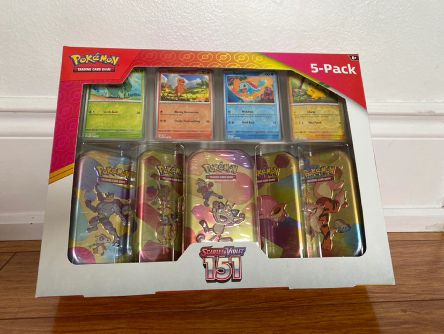 140Five Pokémon trading card game mini tins. Each tin features different Pokémon artwork. Includes booster packs and collectible cards. Great for collectors or players. 2 boxes available - $130 each