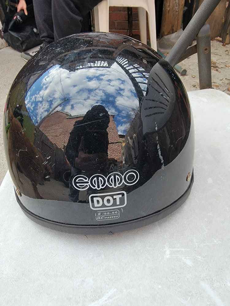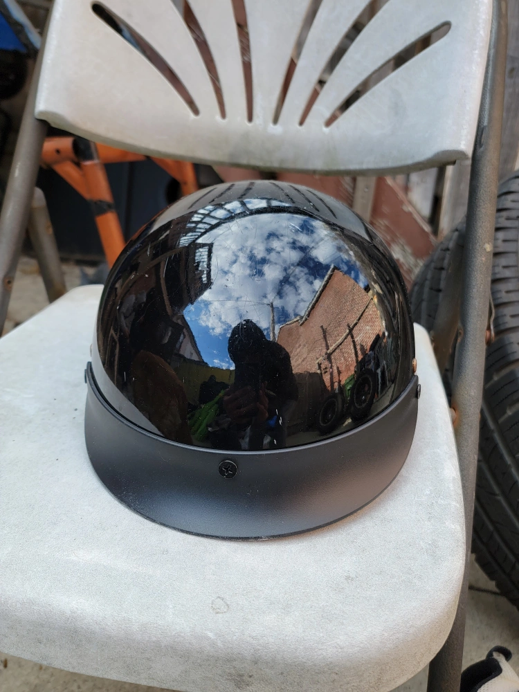 370Pre-owned black open face motorcycle helmet. DOT approved. Size small