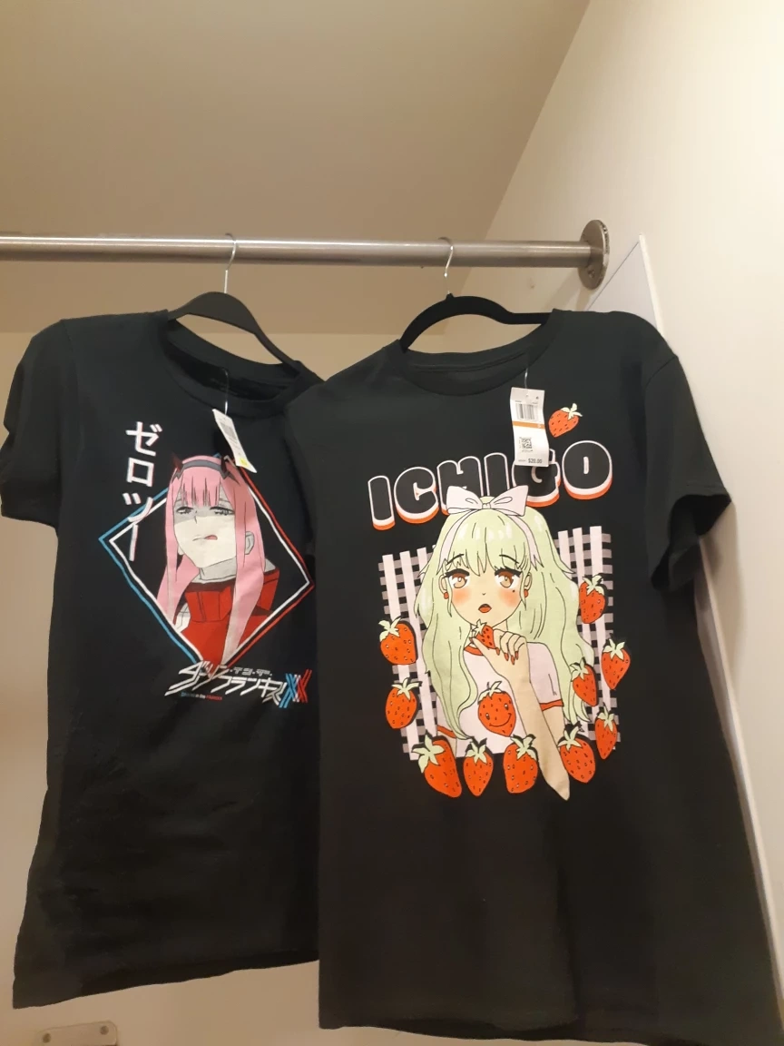 2 x NWT anime shirts for sale (Darling In the Franxx Crunchyroll brand design, XS, and "Ichigo" Love Tribe brand design, S) for sale for $40 for both or $20 per shirt! 7786083054 call or text! Greyhound Station/Main St. pick-up is ideal! Rare to find locally, comfortable and casual fashion! (Original price tags were in USD!)