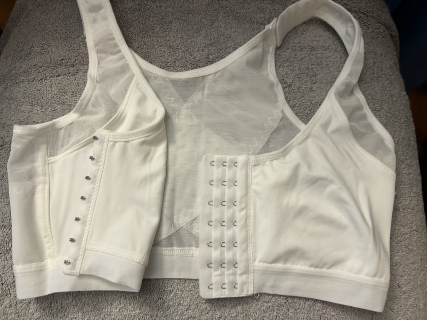 Two bras with Front Closure, adjustable via 3 rows of closures. One white, one black. Each one is $5 OR BOTH for only $8. Adjustable straps. Mesh back. Comfortable and supportive - marked as XL - which I found size to be closer to 34 B when received online, so they did not fit.